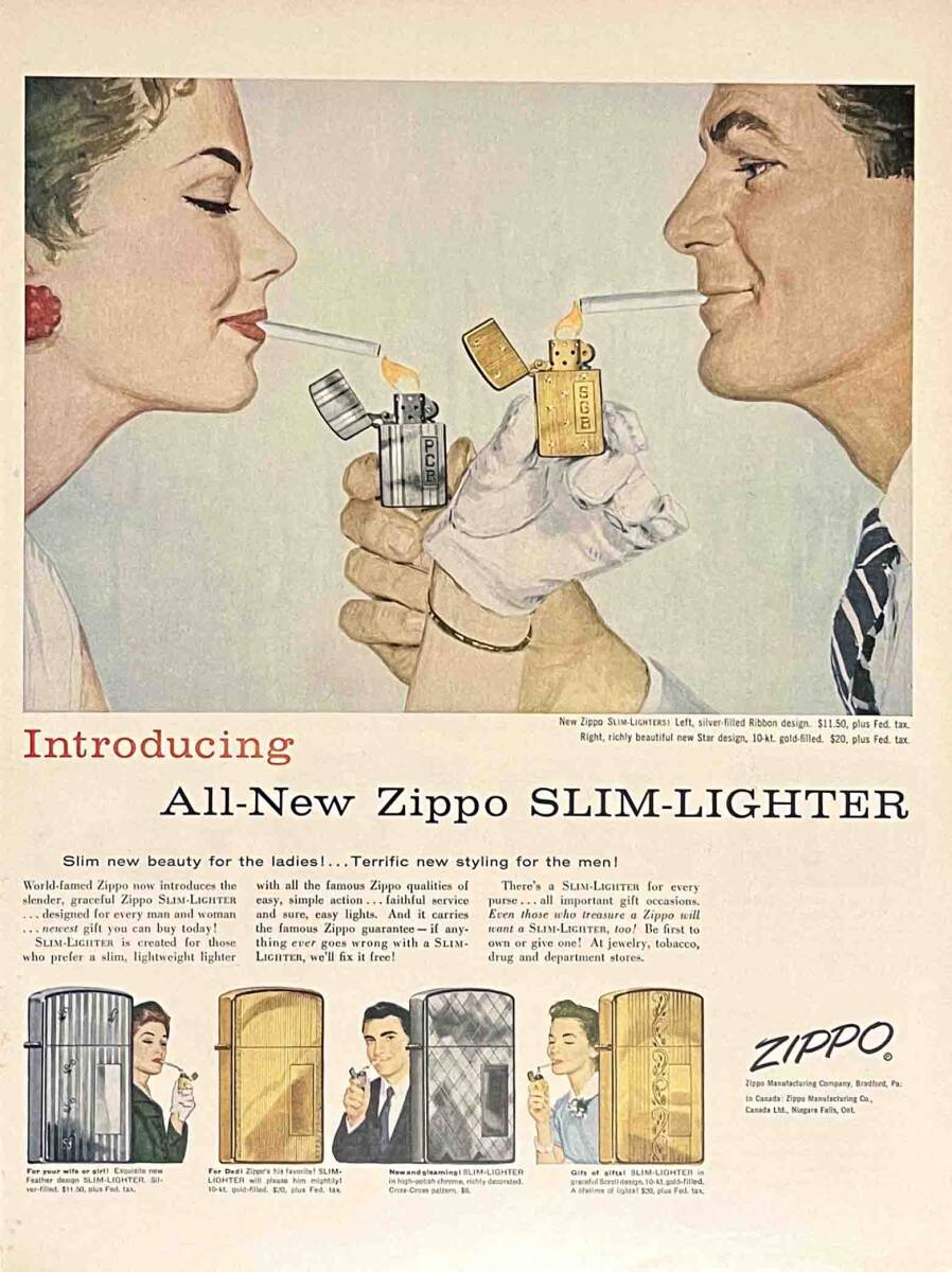 1956年ZIPPO Lightersご紹介 新しいジッポースリムライター。/ヴィンテージ雑誌広告オリジナル・ポスター
