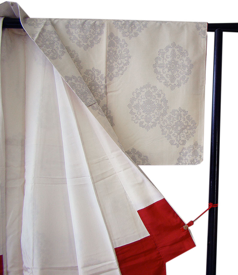 商品説明 | こちらのお品は「袷」ですので10月から5月までお召頂ければと思います。 しなやかな紬は、着易く動きも軽く、着くずれしない腰の強さを併せ持った お洒落着としていつでもどこへでもお気軽にお愉しみ頂けご愛用頂けるお品です。 とてもしなやかな肌触りも心地よいふっくらとした真綿紬地は、 淡い生成り色地に墨色の織柄、 八掛は赤色(正絹)と、幅広い年代の方にお召し頂けます。 |
