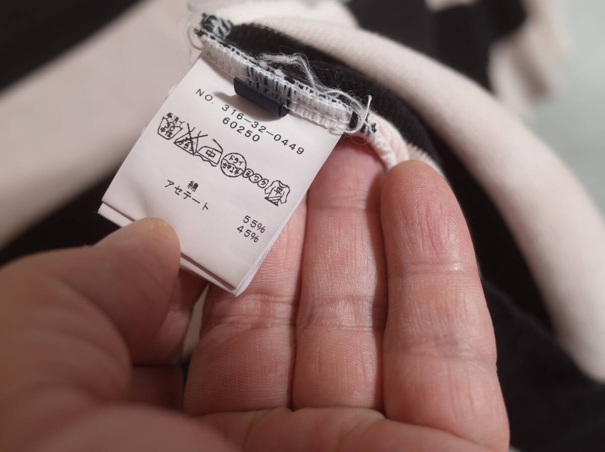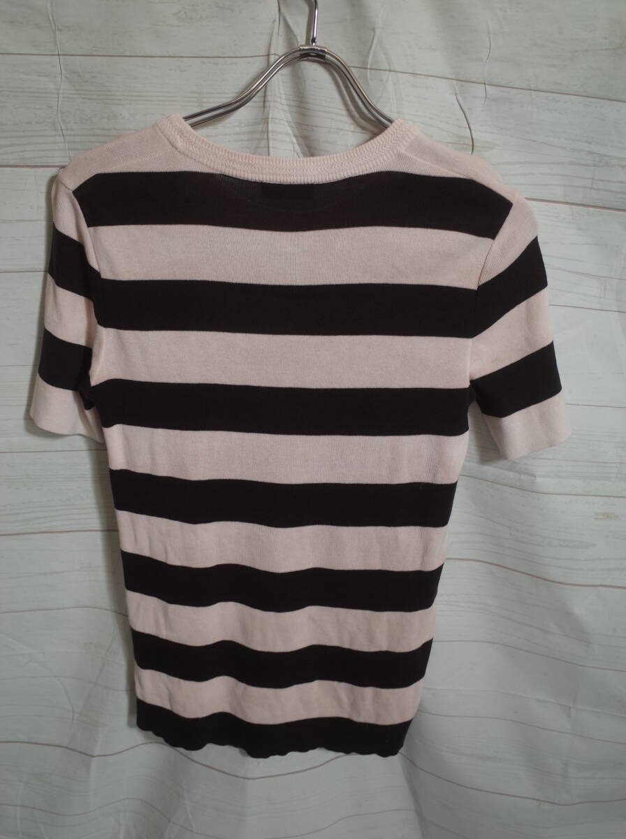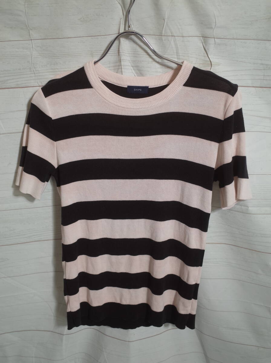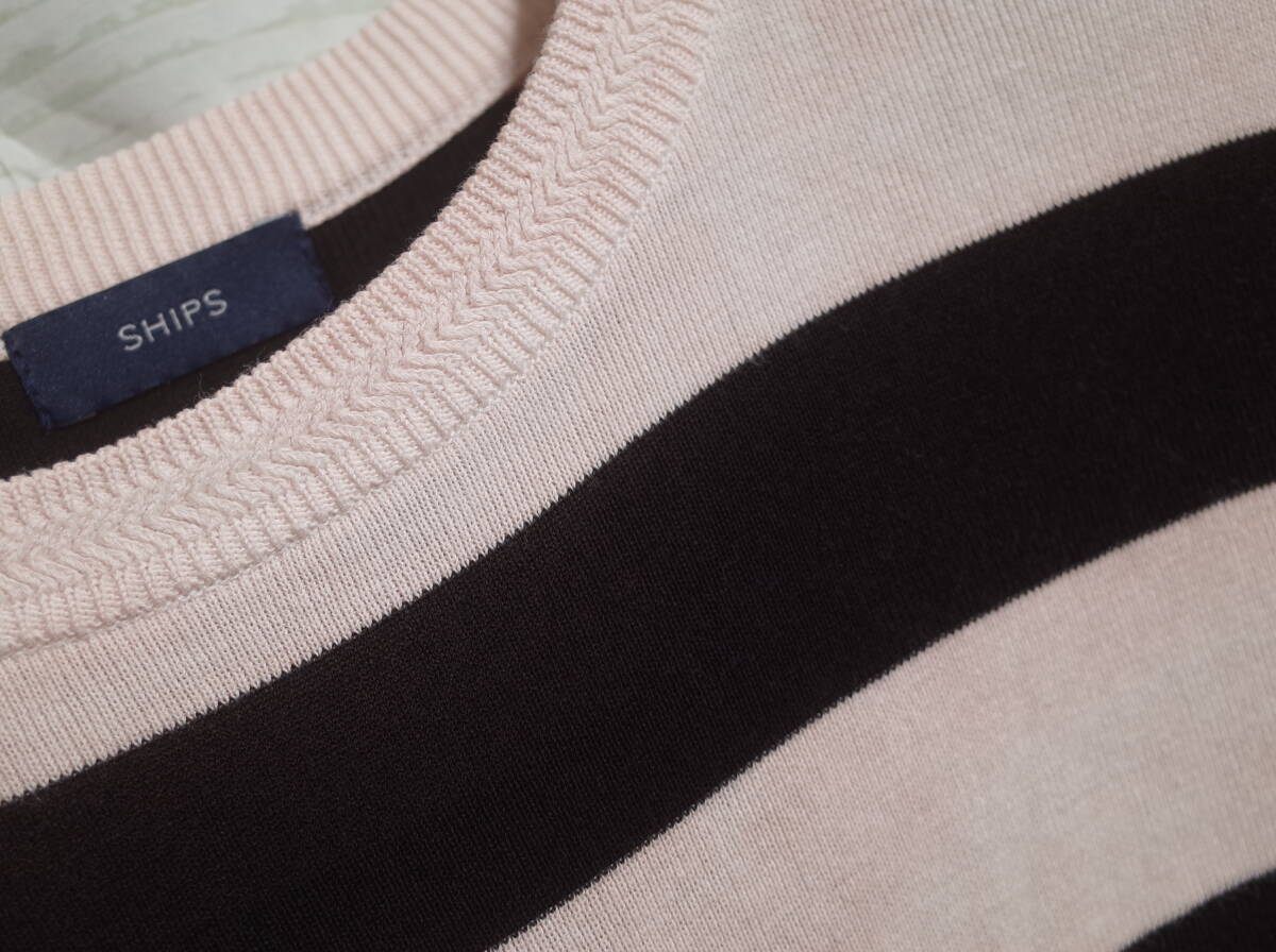 レディース pk216 SHIPS シップス ハイゲージニット 太ボーダー 半袖 カットソー Tシャツ 36 ブラック/ピンク