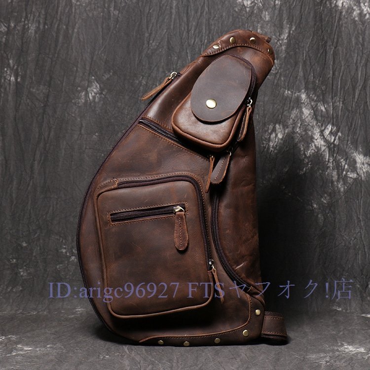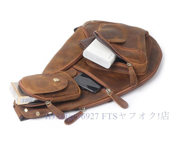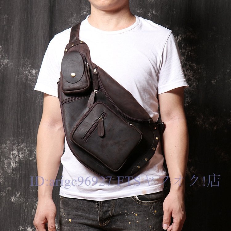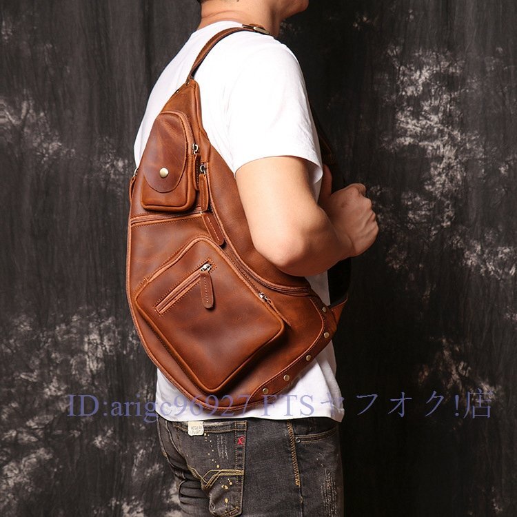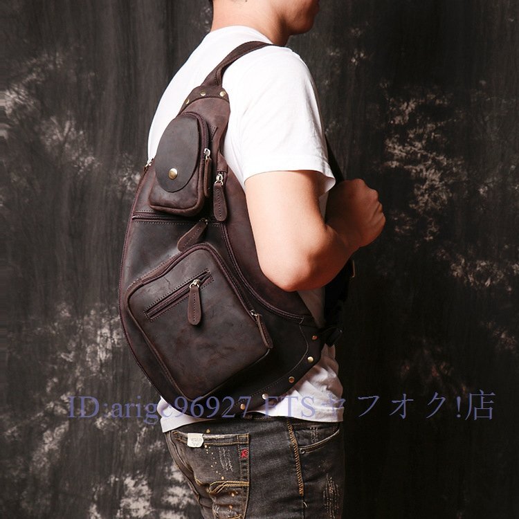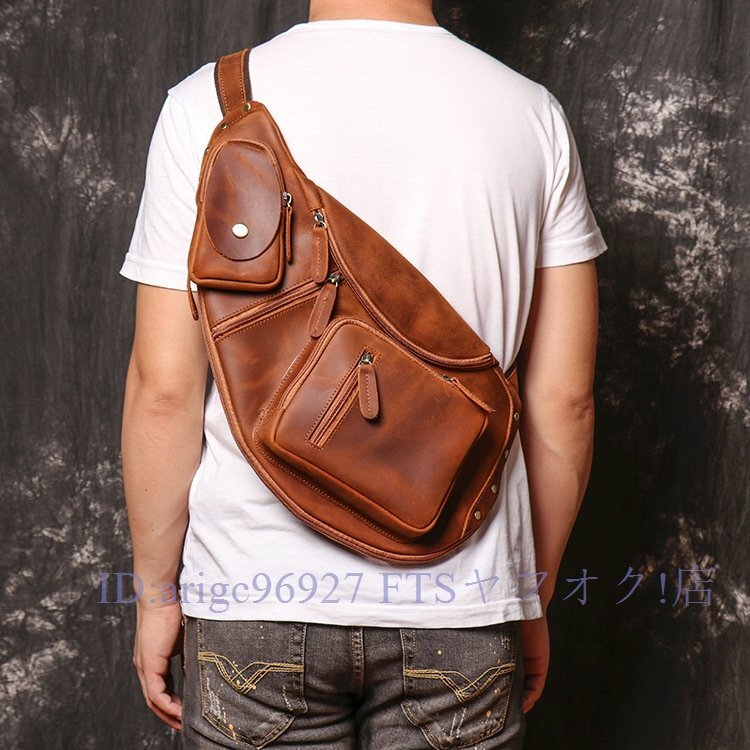 B1633☆新品登場 左右肩掛け可能 ボディバッグ メンズバッグ 大容量 防水 斜めがけ ワンショルダーバッグ かばん ブラウン