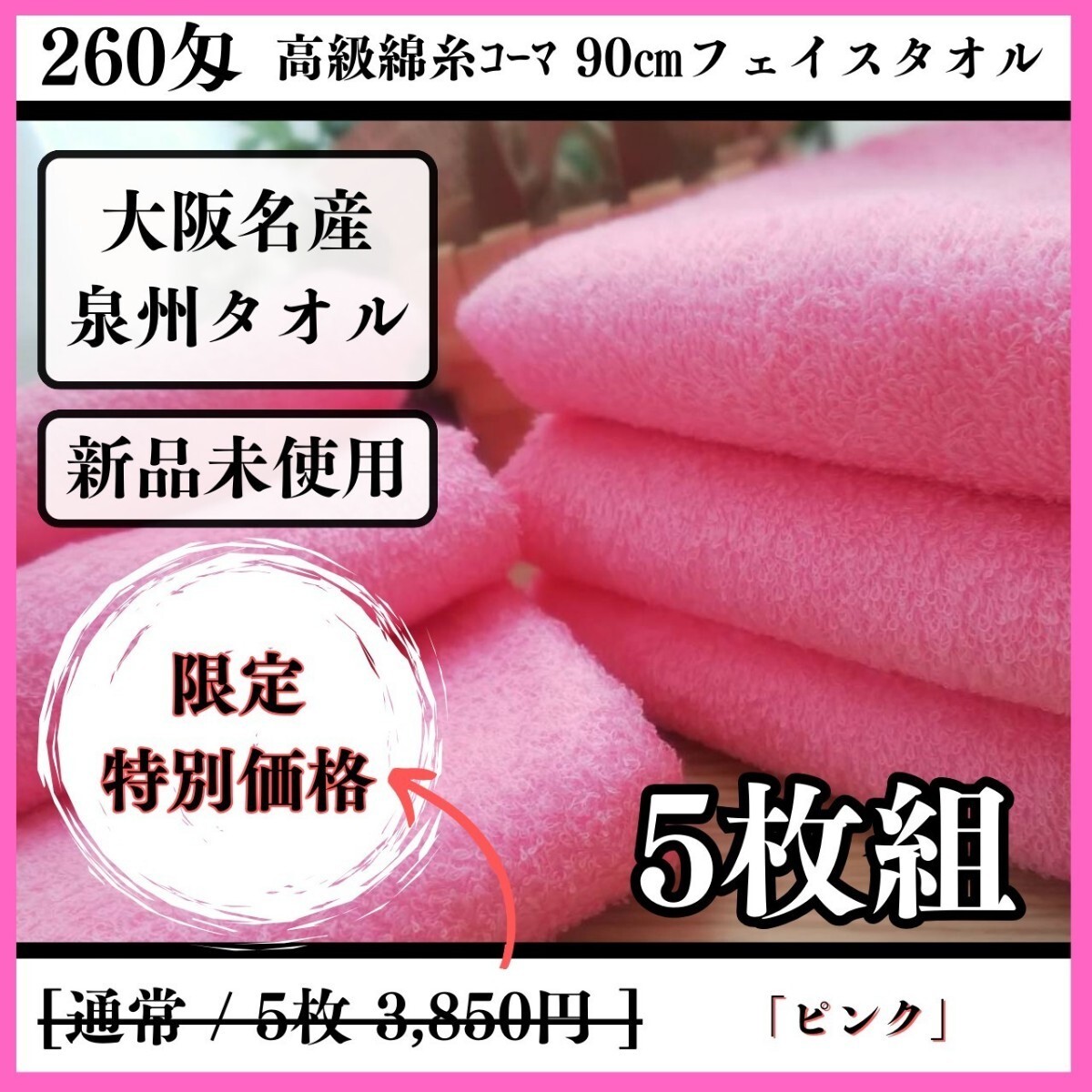 【新品未使用】【泉州タオル】260匁高級綿糸コーマ 90㎝ピンクフェイスタオルセット5枚 タオル新品 タオルまとめて 吸水性抜群