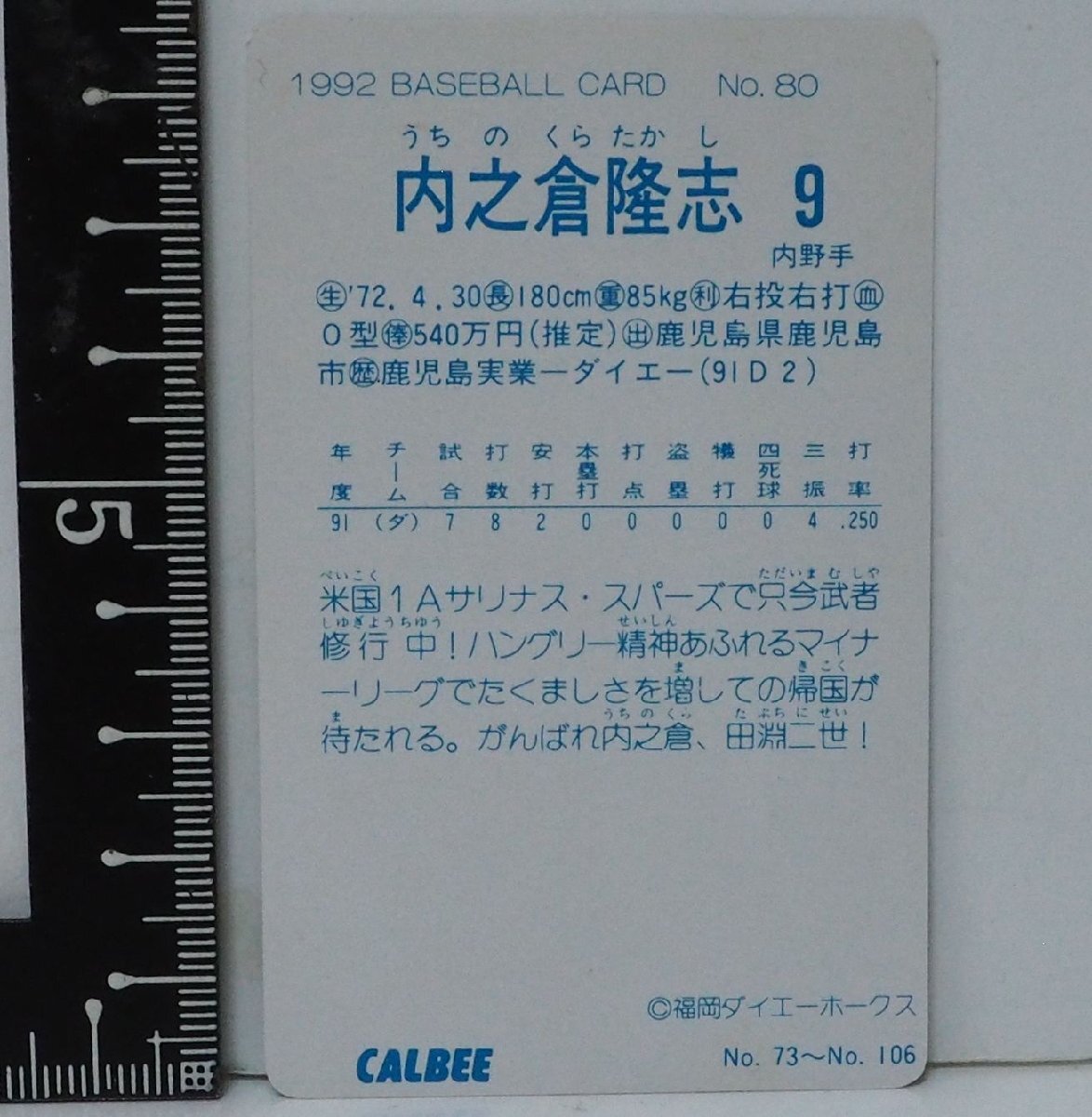 92年 カルビー プロ野球カード No.80【内之倉 隆志 内野手 福岡ダイエーホークス】平成4年1992年 当時物 Calbeeおまけ食玩BASEBALL【中古】