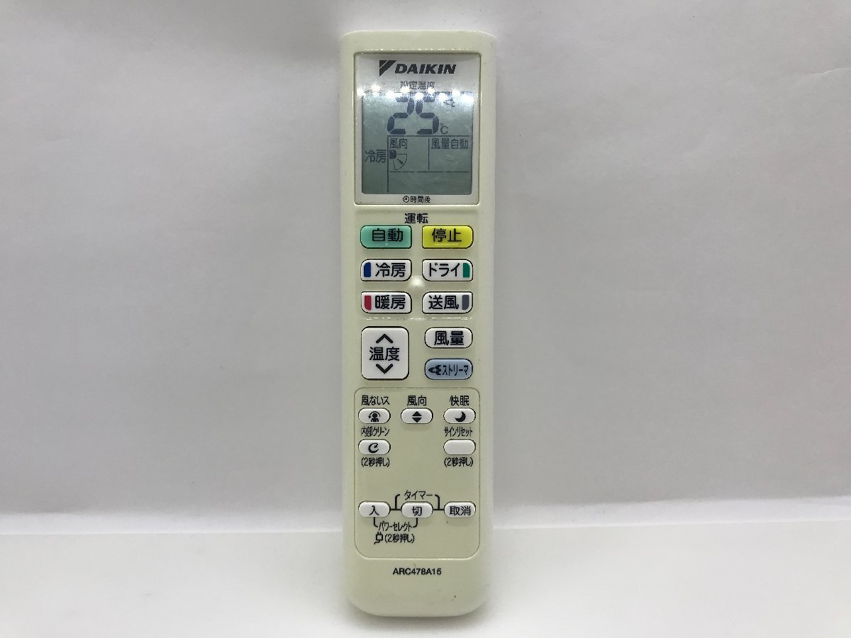 ダイキン エアコンリモコン ARC478A15 中古品C-9007