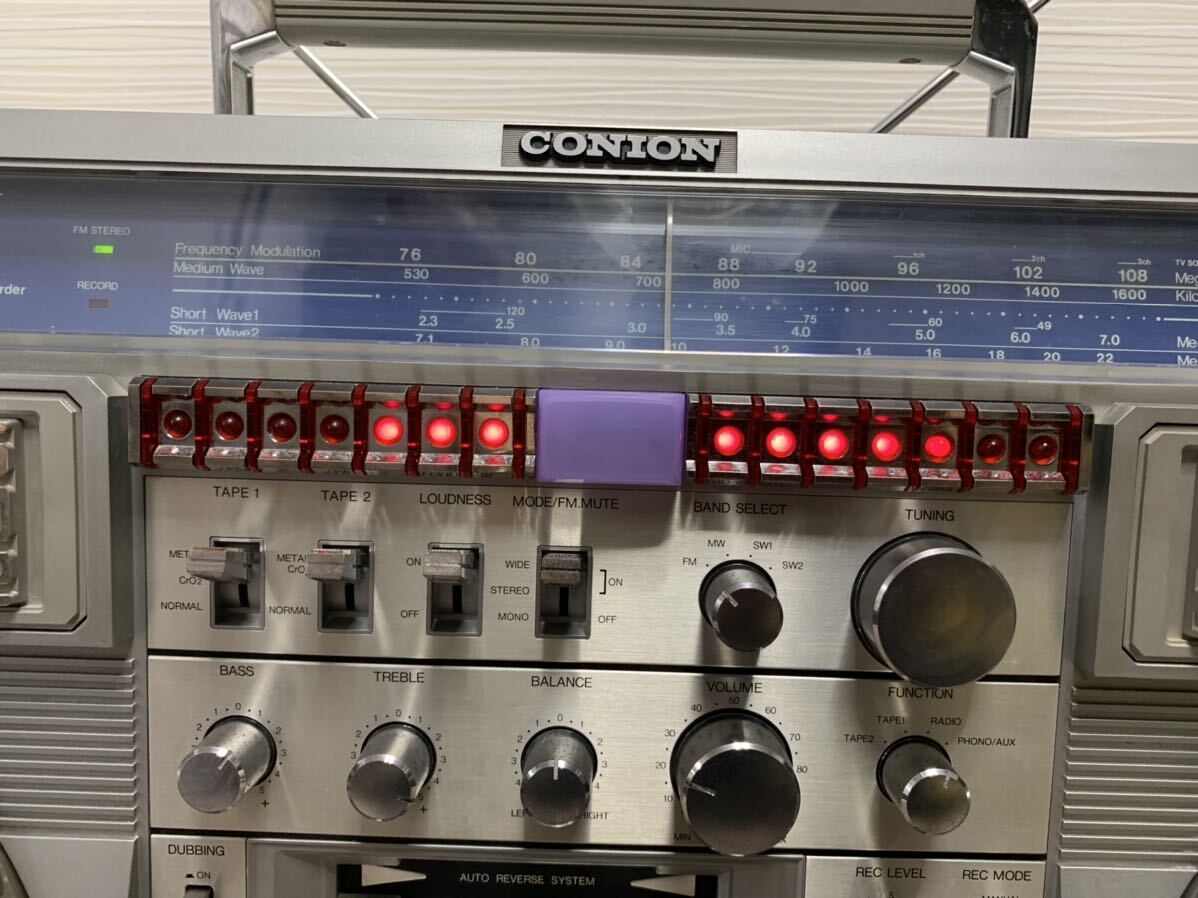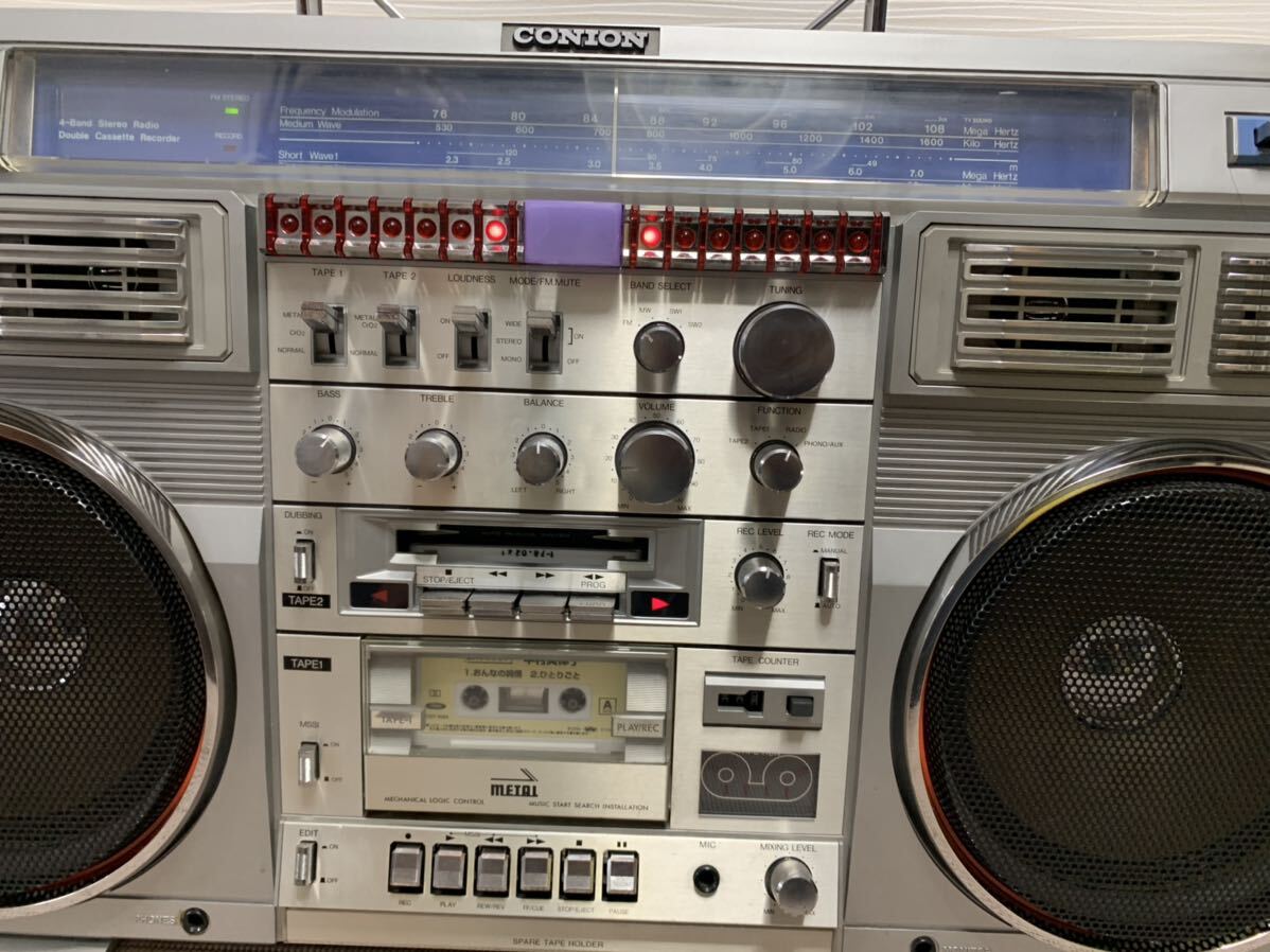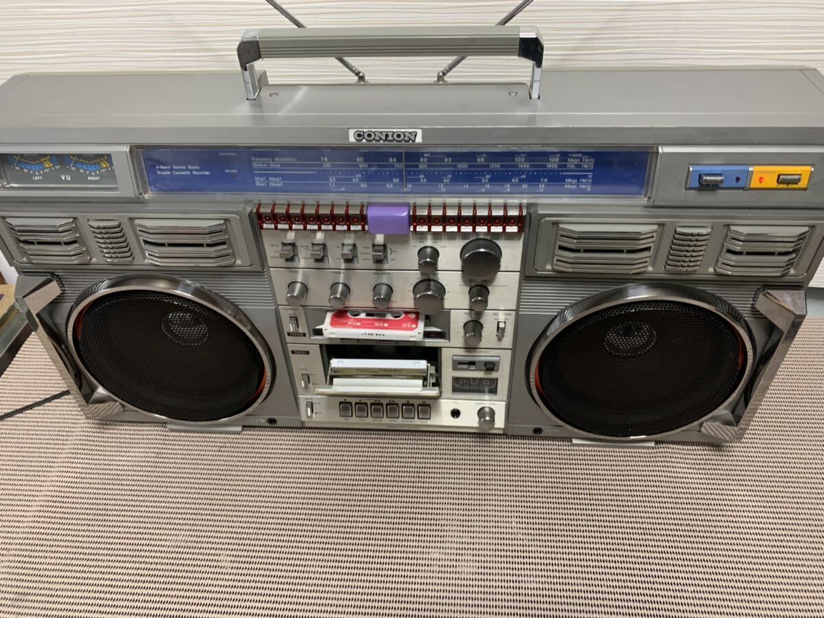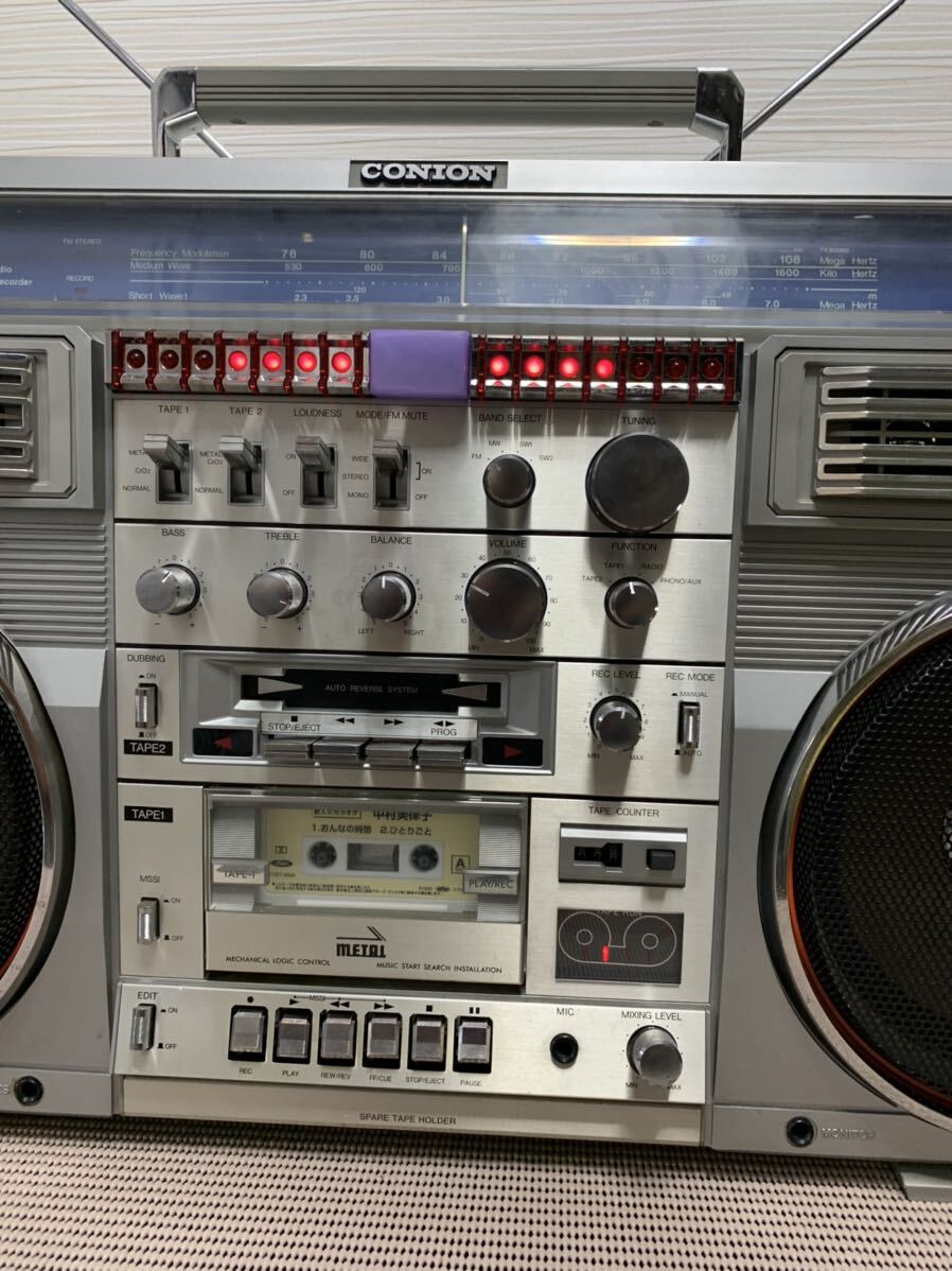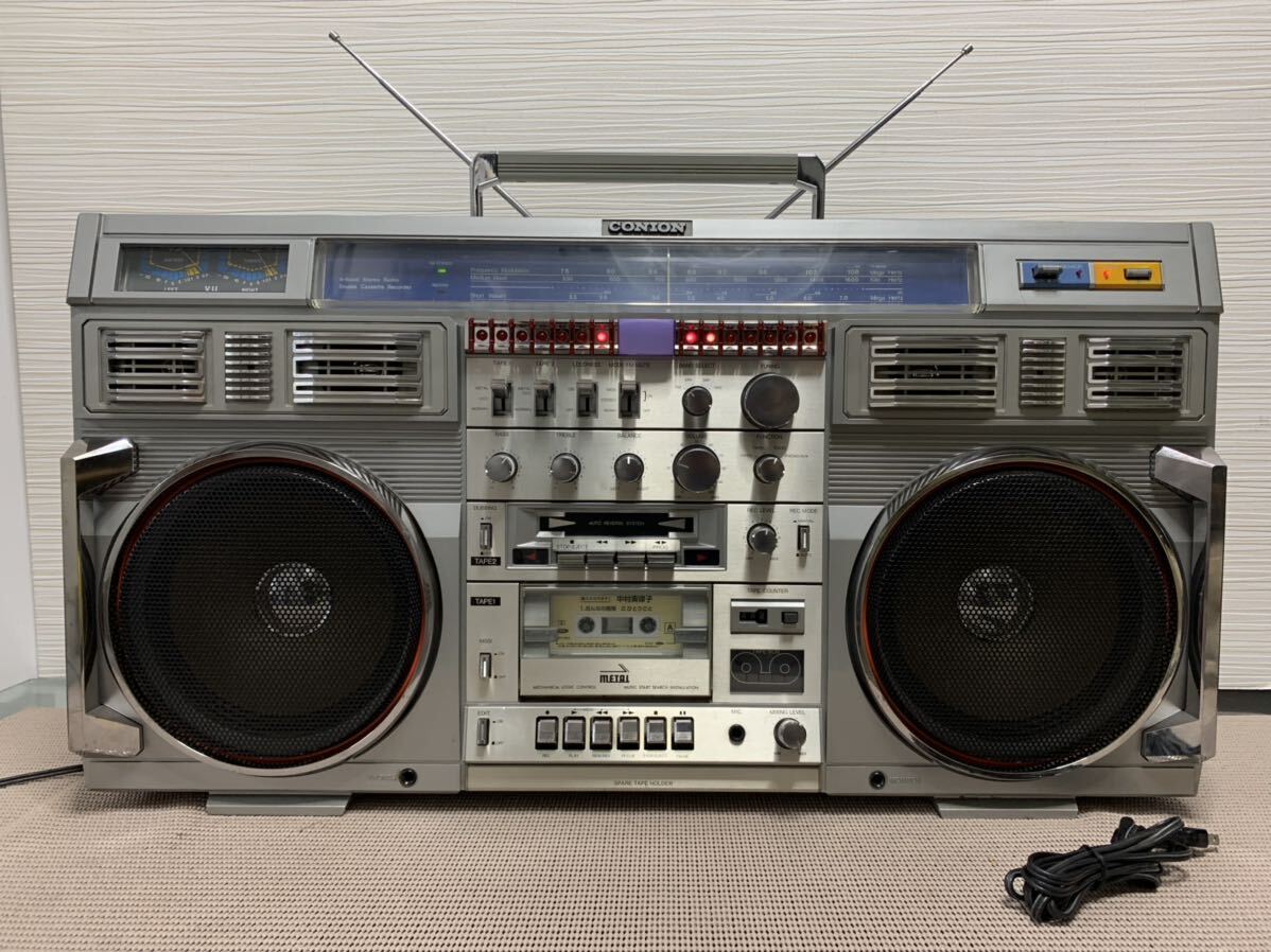 conion C-100FJ (単に「C100」とも呼ばれる) は、1980 年代初頭から中期にかけて Conion (「Coney Onkyo」) によって販売されました。 これは当時の最も象徴的で有名なラジカセの 1 つですが、それには十分な理由があります。 大きくて、大きくて心地よい声、派手です! そのイメージは、アルバムジャケットから衣服、スマートフォンケースに至るまで、あらゆるものを飾るために使用されています。 多くのコレクターは、これが 80 年代で最も騒々しい一体型ラジカセだったと述べています。 投資を保護するために、LED メーターの間に近接センサーを備えた警報システムが装備されています。