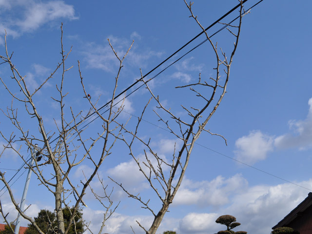 ウメモドキは赤い実がなります。葉が全て落ちて赤い実のみが付いているのは風情があります。