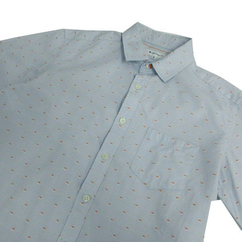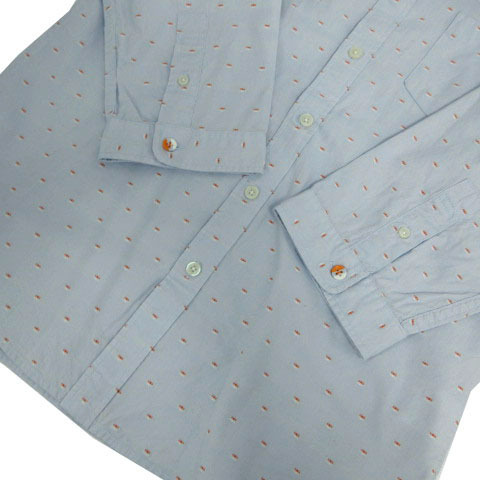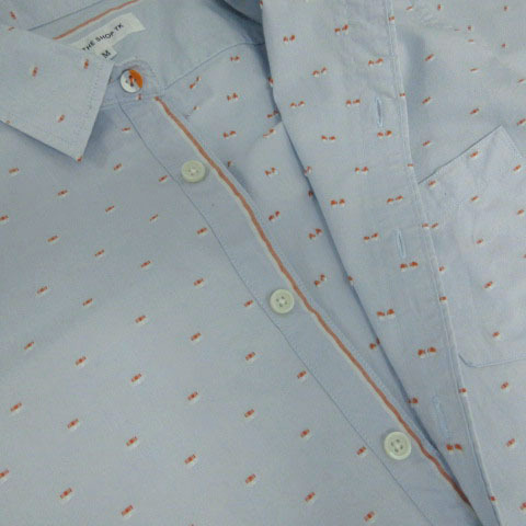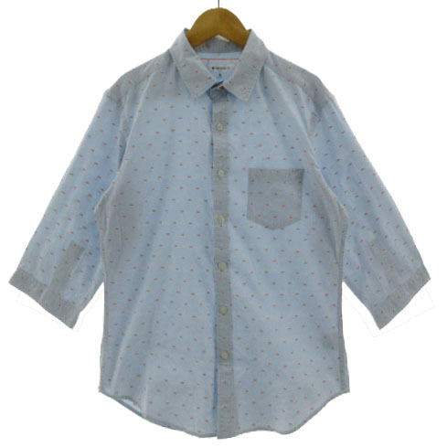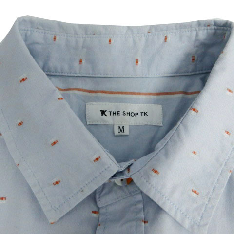 ザショップティーケー THE SHOP TK シャツ 七分袖 コットン 総柄 ブルー系 水色 オレンジ ホワイト 白 M メンズ