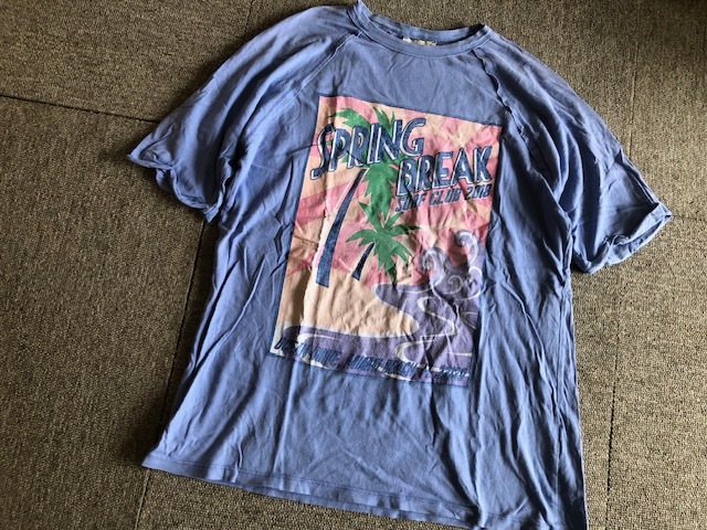 切りっぱなし部分があったり、元々のUSED風加工で色あせもあるTシャツです。