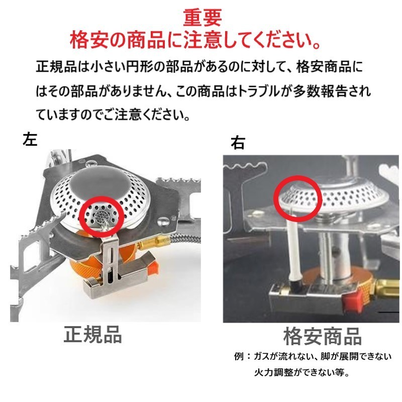 ※こちらのシングルバーナーと同じデザインをした格安バーナーにご注意ください。見分け方は2枚目の写真をご参照ください。