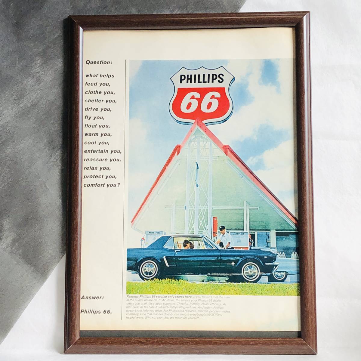 1960年代当時のアメリカの雑誌に掲載されていた『 フィリップス 66 (POILLIPS 66 ) の広告を額装いたしました。