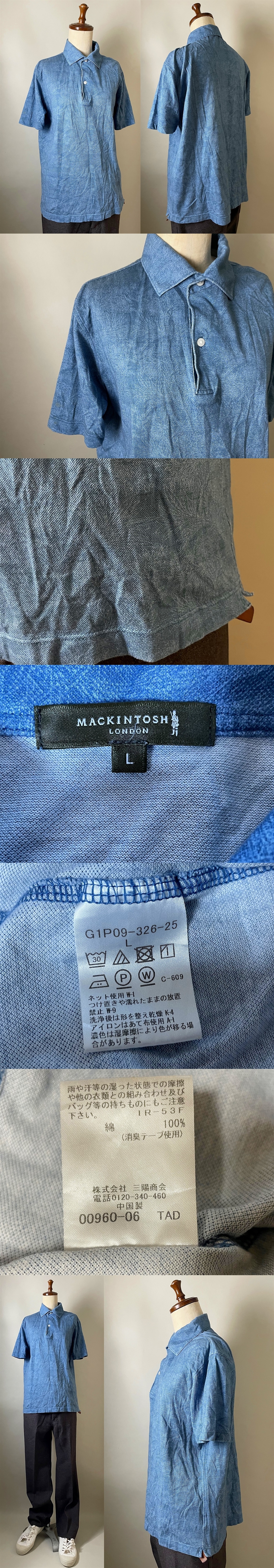 ★【国内正規品 G1P09-326-25】MACKINTOSH LONDON マッキントッシュ ロンドン ボタニカル柄 総柄 ポロシャツ 半袖 L ブルー系