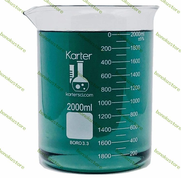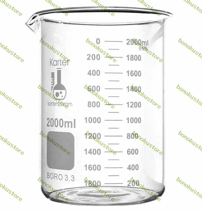 2000ml ビーカー ローフォーム グリフィン ホウケイ酸 3.3グラス ダブルスケール 目盛付き Karter Scientific 213D20 (シングル)