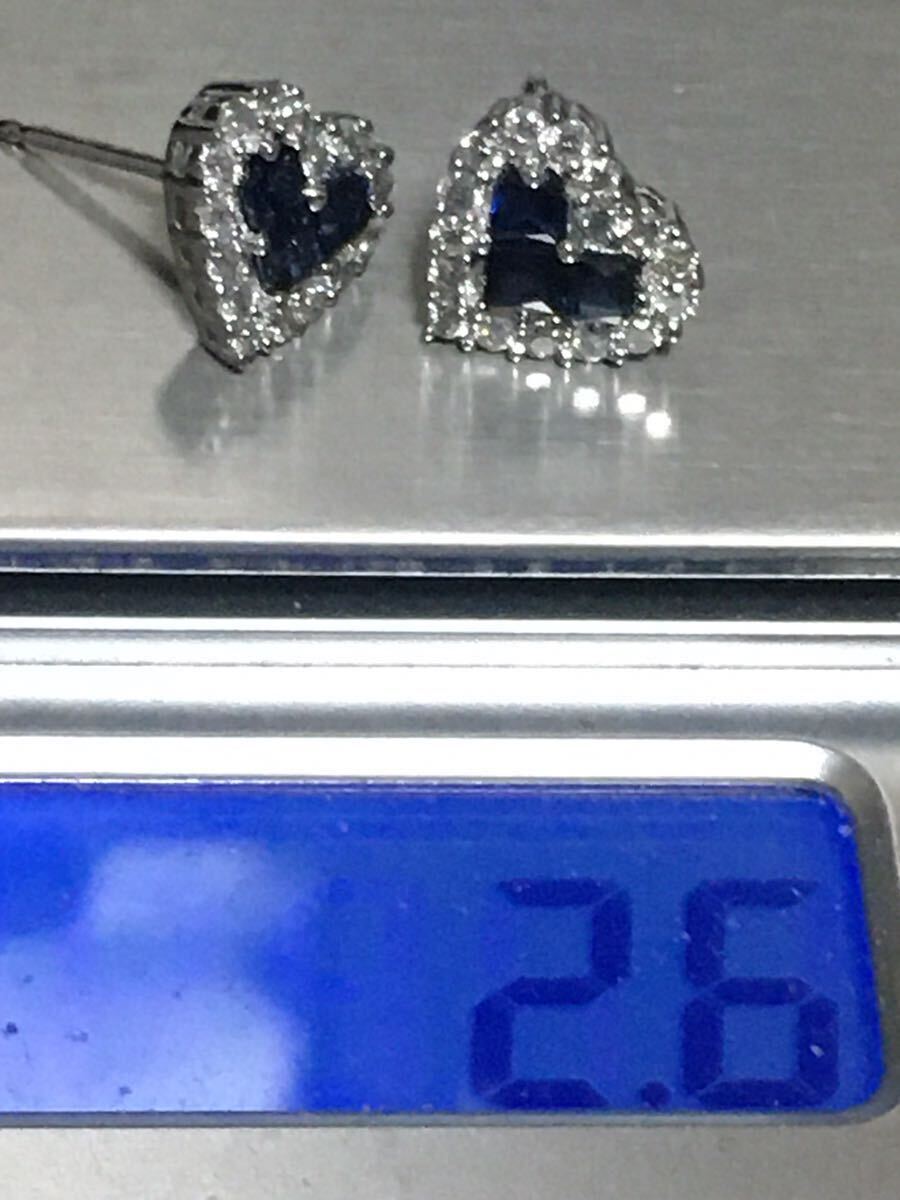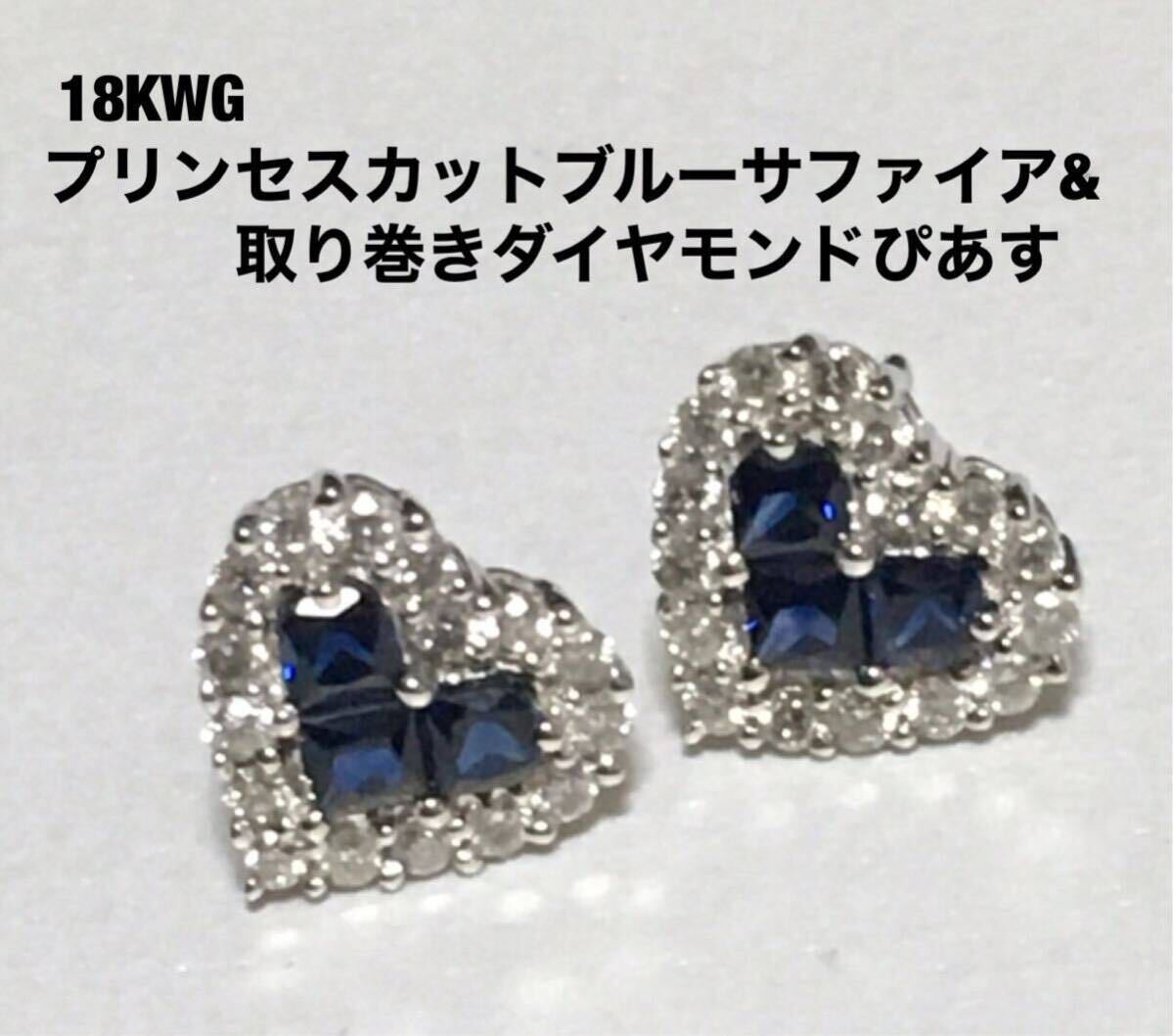 ■ 18KWGプリンセスカットブルーサファイア&取り巻きダイヤモンドぴあす