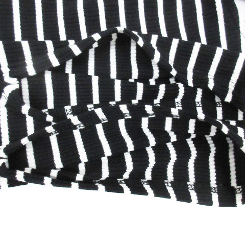 ページボーイ PAGE BOY リブニット カットソー ノースリーブ ラウンドネック ボーダー柄 F 白 黒 ホワイト ブラック/FF32 レディース