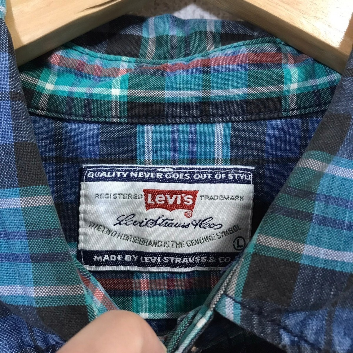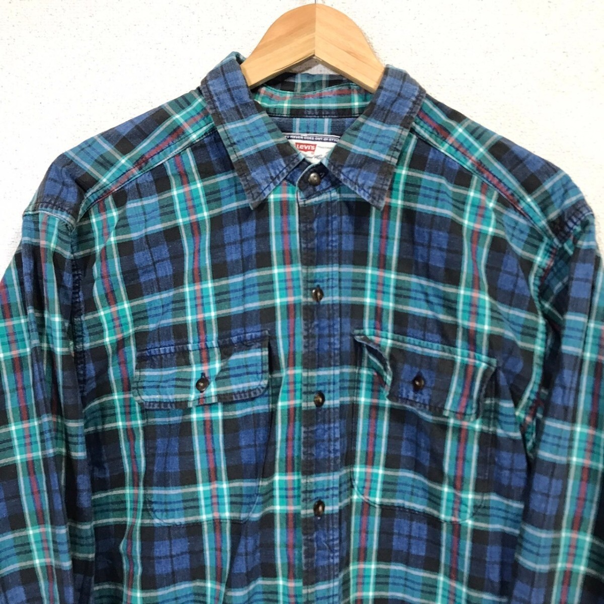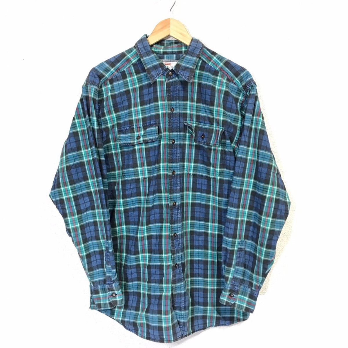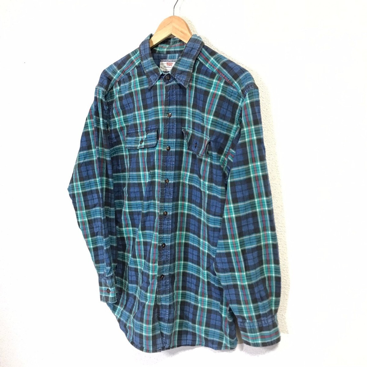 FA220dL Levi's リーバイス サイズL 長袖シャツ チェックシャツ コットンシャツ グリーン×ブルー メンズ マルチカラー 古着 アメカジ