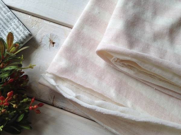 ■■オーガニックコットン100%■接結オーガニックニットボーダーベビーピンク 0.5m