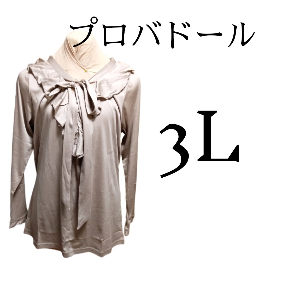 プロバドールフリルリボントップス3L新品未使用タグ付大きいサイズベージュQVC