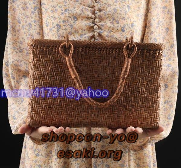 限定★極美品★山葡萄籠 綺麗 手編高級感みバッグ バスケット籐かご山葡萄かごバッグ