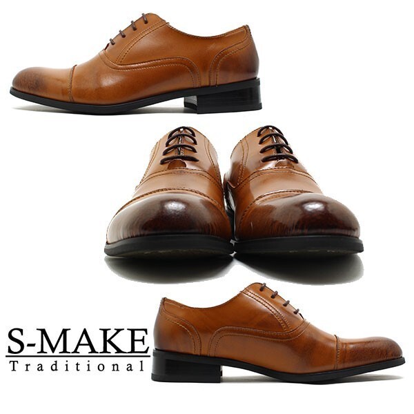 箱付き新品★日本製x本革/S-MAKE★ストレートチップ【24.5EEE/茶】歩きやすい!名ブランド品質ビジネスシューズ/冠婚葬祭にも◆n7318br