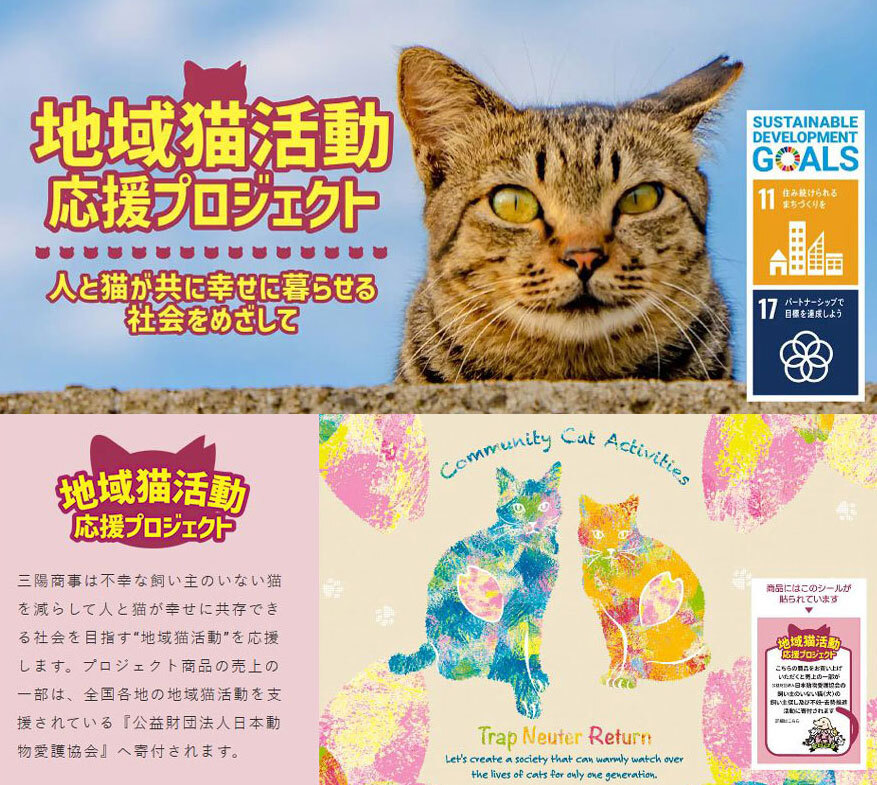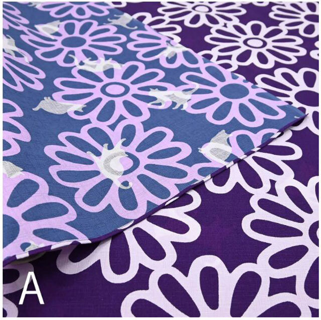 DOTCHDOTCH・三巾両面ふろしき・花とねこ・紫×青・No.042001 地域猫活動応援プロジェクト風呂敷「三巾・サイズ105センチ巾」