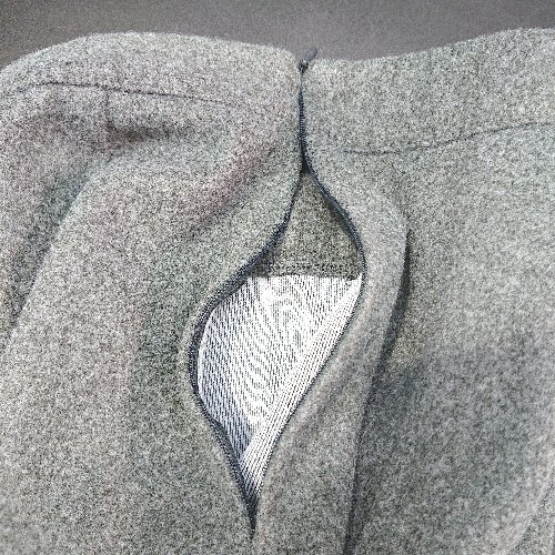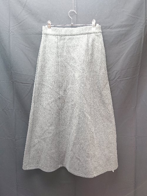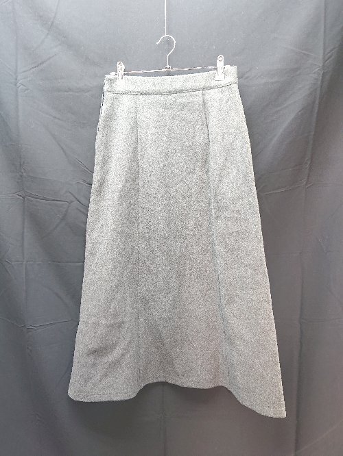 ◇ 新品 ノーブランド ウエストゴム サイドジップ 起毛 ひざ丈 フレア スカート サイズM グレー系 レディース E