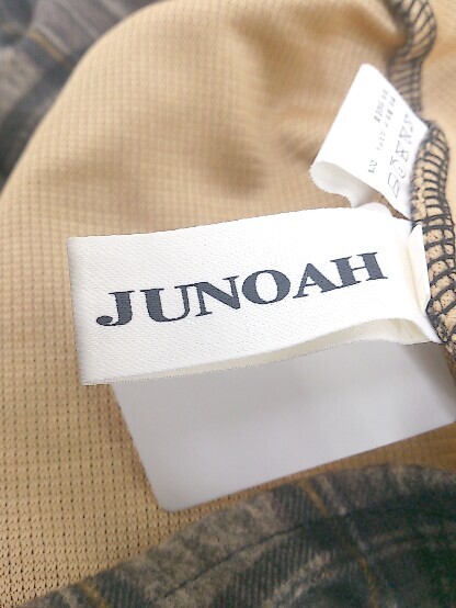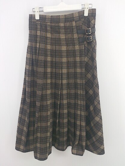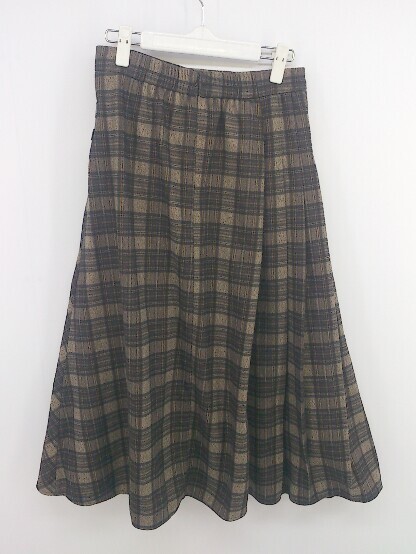 ◇ JUNOAH ジュノア チェック ロング プリーツ フレア スカート サイズL ブラウン系 レディース P