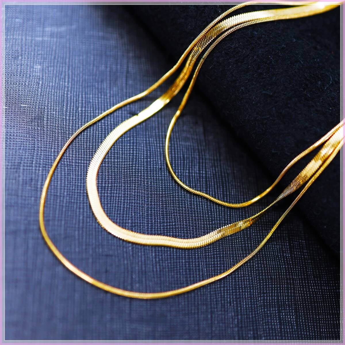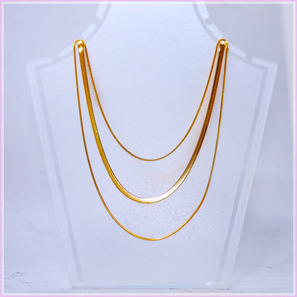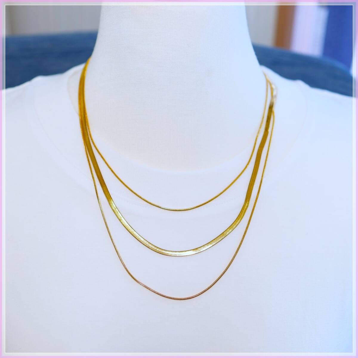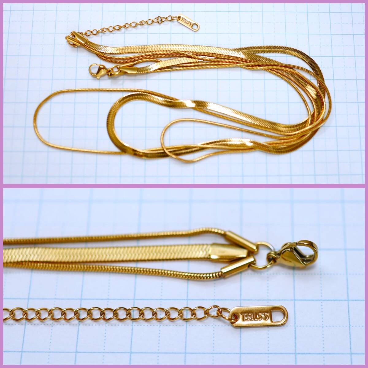 N7964/ステンレス製 三連チェーンネックレス 金色 18金ゴールド加工 ヘリンボーン スネークチェーン 3mm幅 ロープチェーン チェーンのみ