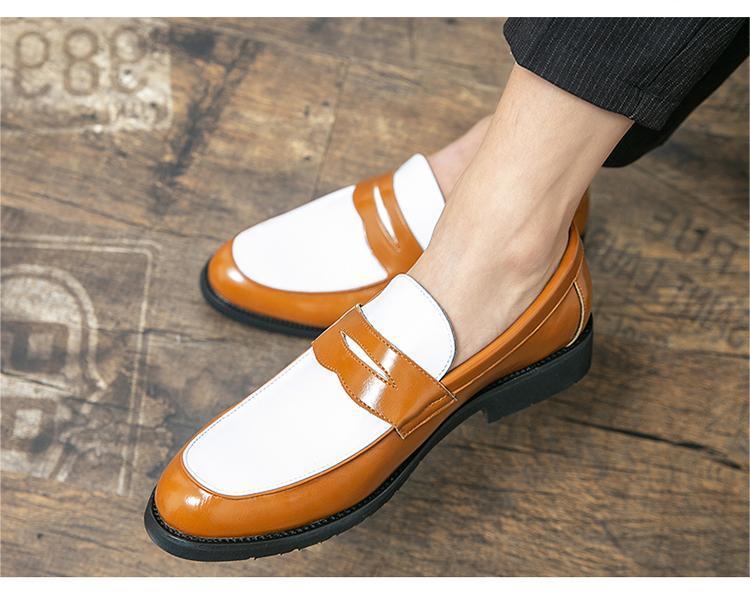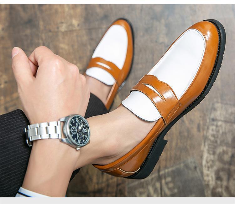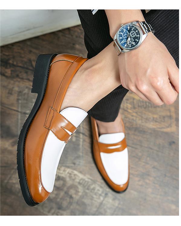 ★NEW★メンズ TG21542-24.5cm/39 ビジネスシューズ ブラウン&ホワイト(2色) クラシカル おしゃれ レトロ UK風 ローファー デッキシューズ