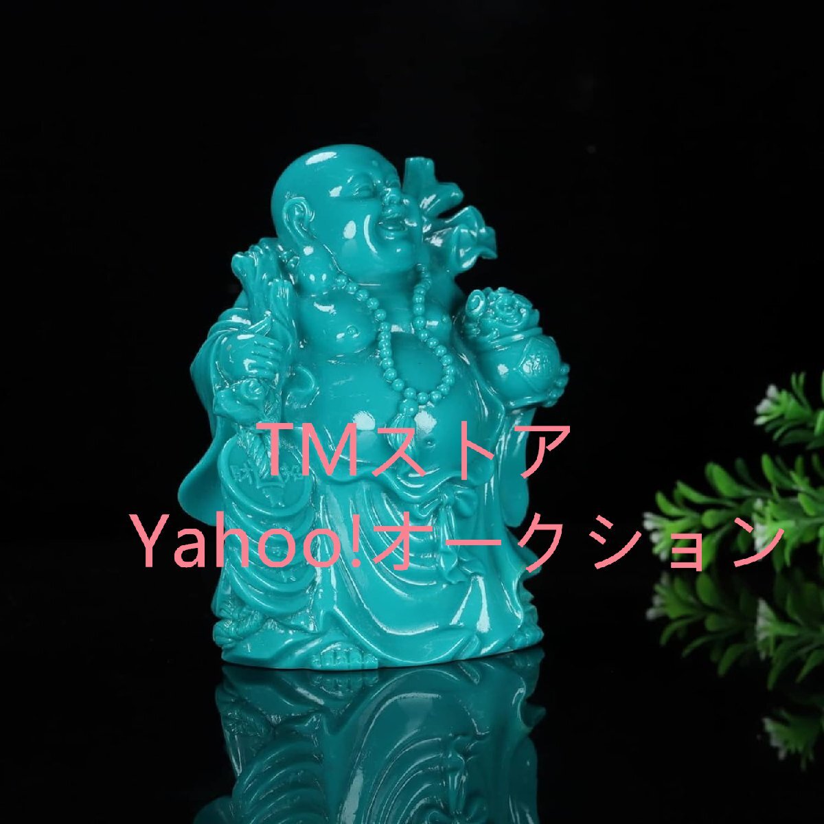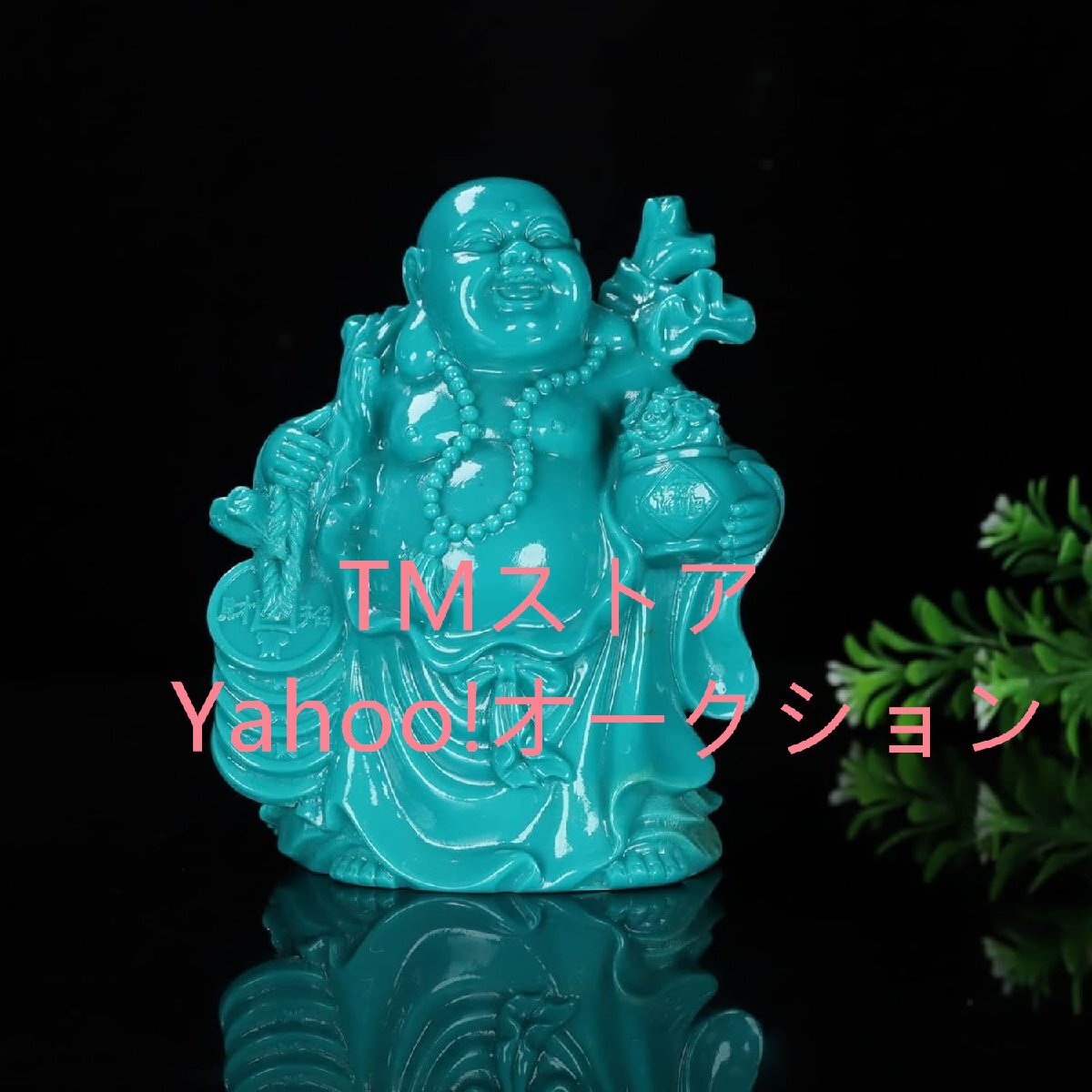 仏像 七福神 布袋 様 天然ターコイズ (トルコ石)布袋様の置物 金運 お守り(高さ12cm×巾10cm×奥行7cm)