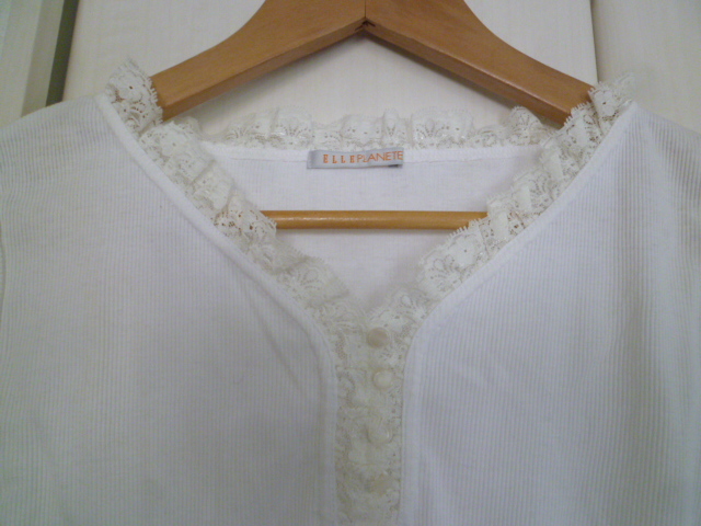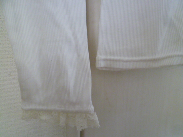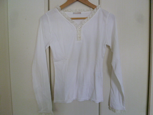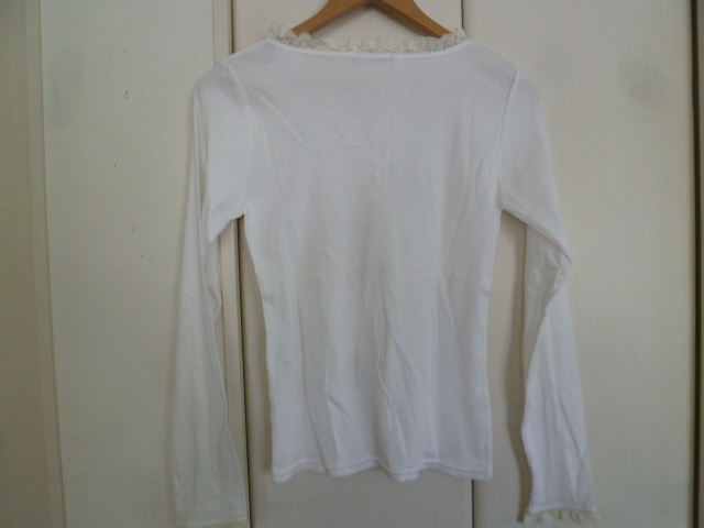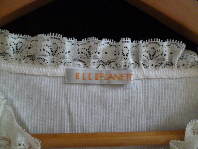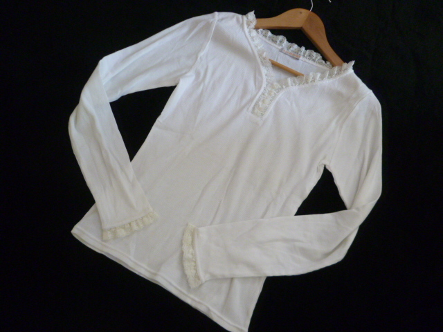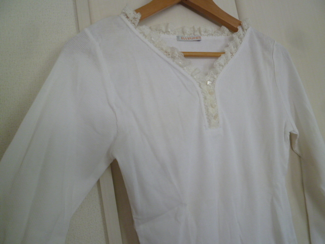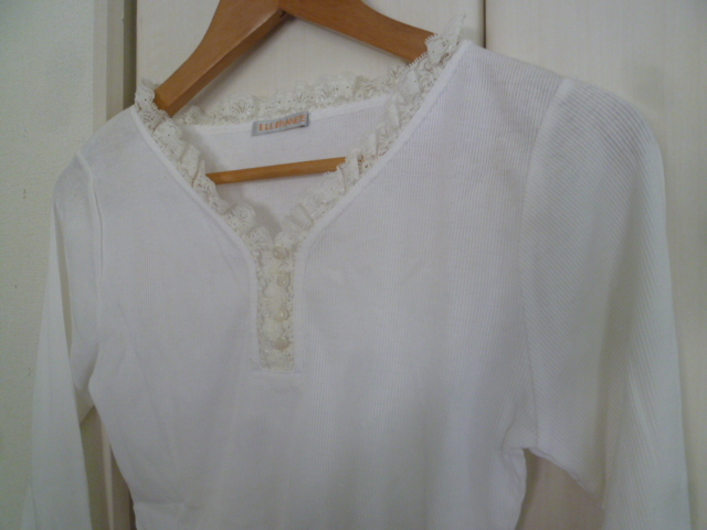 ELLE PLANETE/エルプラネット◇白ヘンリーレースネックリブトップス40◇ホワイトイトキン長袖◇A75tp