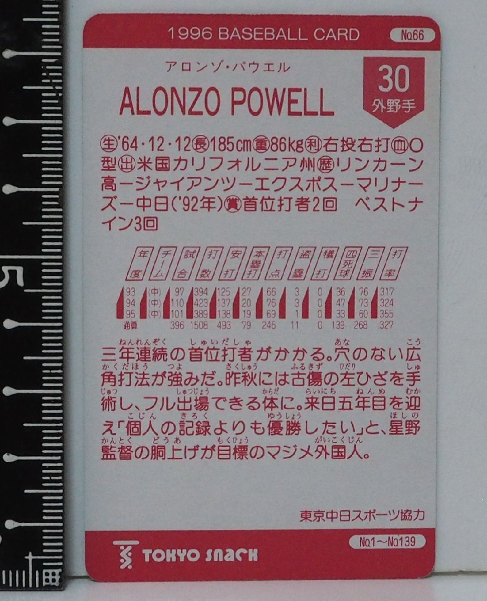 96年カルビー東京スナック プロ野球カードNo.66 レアブロック【アロンゾ パウエル 外野手 中日ドラゴンズ】平成8年1996年 当時物おまけ食玩