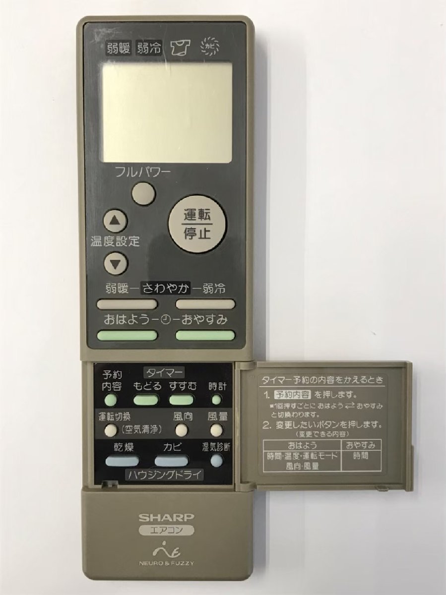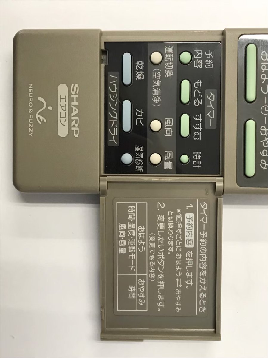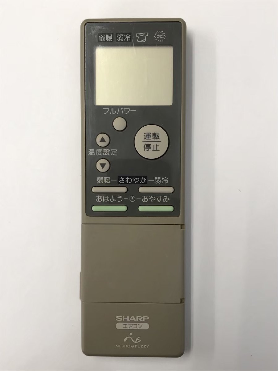 【SHARP CRMC-A252JBEO 電池付き】液晶に小傷あり、裏面に落ちない汚れあり。リモコンのみの販売です。赤外線チェック済です。 すぐお使いいただけるよう電池付き(単4乾電池2個付き)で発送いたします! 電池は接触しないように紙を挟んでおりますので、到着したら引き抜いてからご利用ください。 1点1点専門スタッフが丁寧に検品、できる限りのクリーニングはしておりますが、落としきれない汚れ、ヤケ、キズ、黄ばみ等の劣化はあるものとお考えください。 見た目に関して神経質な方は購入をお控えください。 電池や設定の問題を解決し、使用できるようになっています。 使用できない場合はまずストアにご相談をお願いします。 設定の問題、対応機種間違い、本体側の問題等、リモコンが不良でない場合は保証対象外です。対応機種についてのご質問はお答えできかねます。 各メーカーへお問い合わせいただくか、検索から各機種の取扱説明書をご確認ください。 中古リモコンは現品限りとなりますので、ご希望の商品がございましたらお早めにご購入ください。 ※他店でもこちらと同じ中古リモコンを販売しております。そのため他店でお客様より先に購入があった際は、大変申し訳ございませんがご購入いただいた商品はキャンセルとさせていただきます。あらかじめご承知ください。