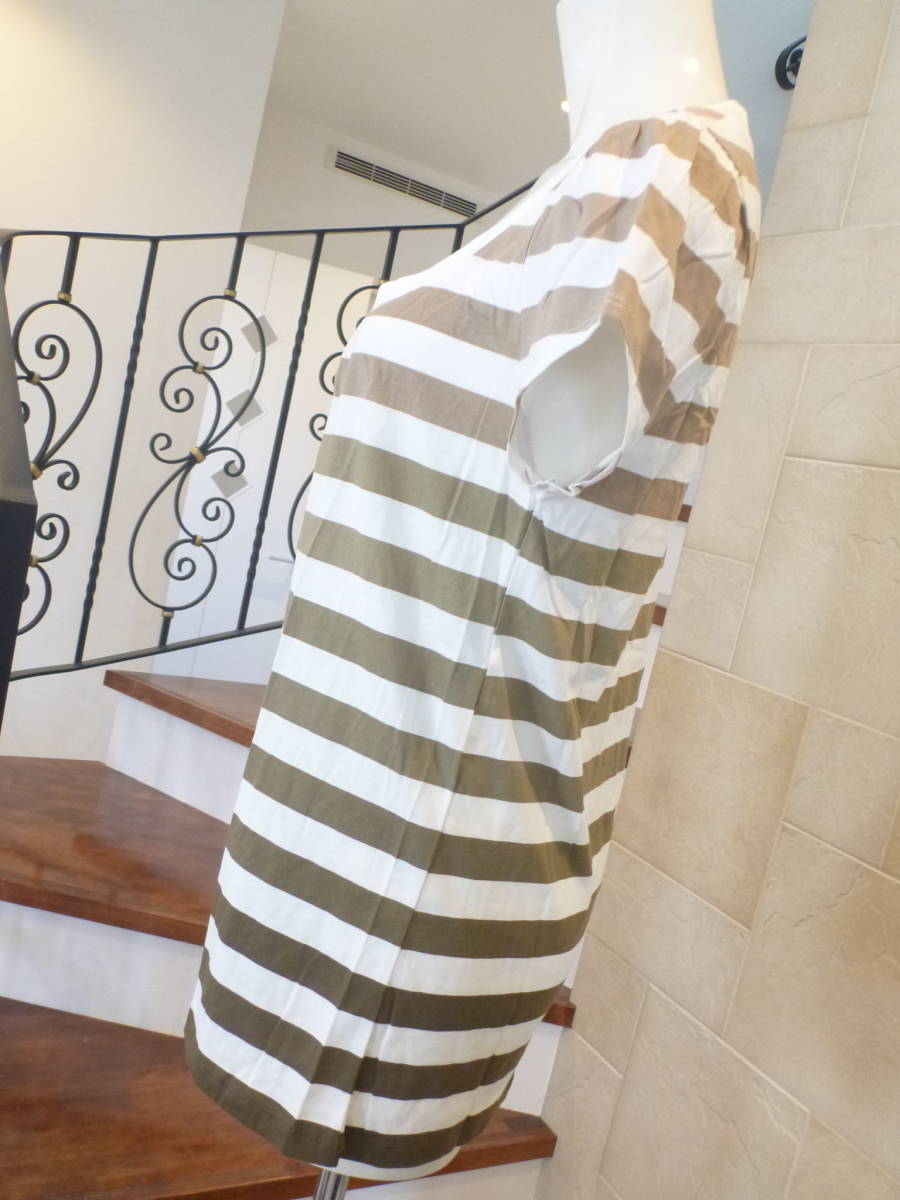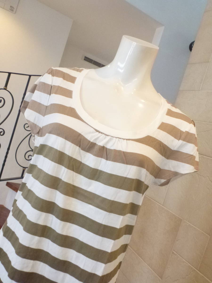 ◆ベージュ~カーキ グラデーション ボーダー 半袖 カットソー