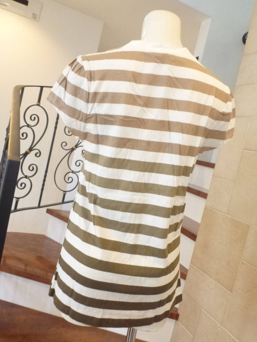 新品未使用 Laura Ashley(ローラア シュレイ)★ベージュ~カーキ グラデーション ボーダー 半袖 カットソー L相当