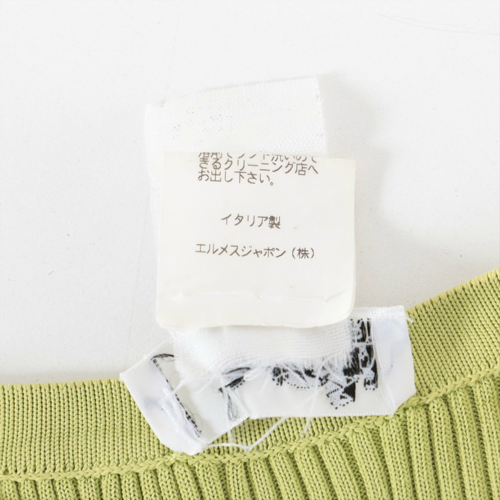 | エルメス(HERMES) Vネック ノースリーブ リブ ニット セーター セリエボタン レーヨン トップス #S ライトグリーン ウェア(中古) |