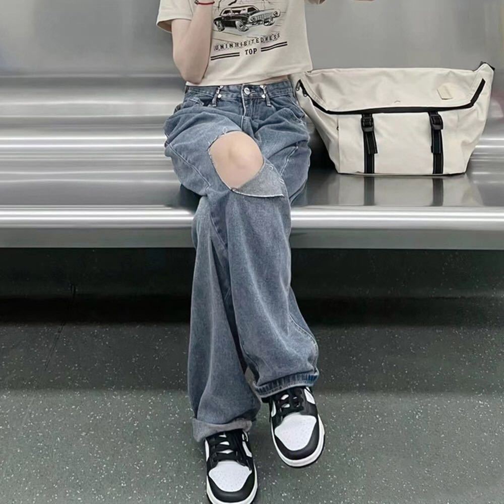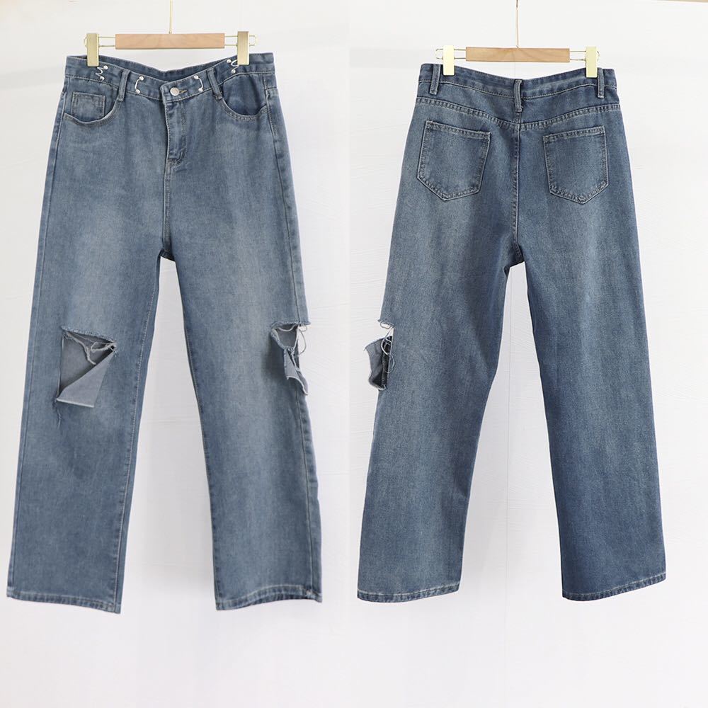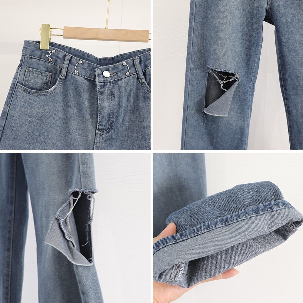 ダメージデニム韓国/ストリート大人美脚/カジュアルジーパン