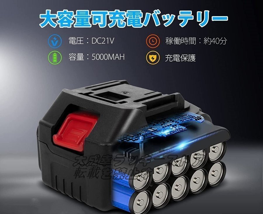 【豊富な付属品】■パッケージ内容:高圧洗車機*1、24Vバッテリー*1、充電器*1、ステンレス鋼延長ロッド*1、回転ノズル*1、クイックコネクタ*1、給水ホース*1、自吸式フィルター*1、ソープポット*1、収納ケース*1