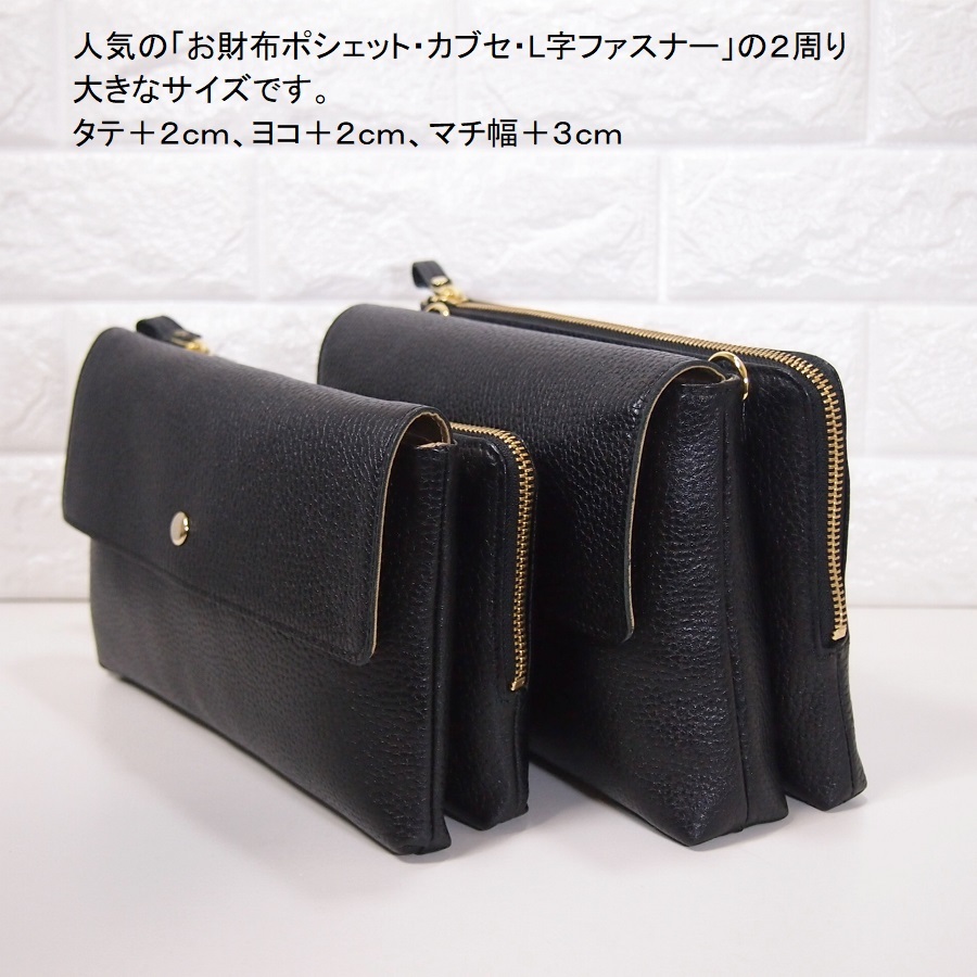 ●人気の「お財布ポシェット・カブセ・L字ファスナー」シリーズより、2周り大きなサイズ(従来品よりタテ+2cm、ヨコ+2cm、マチ幅+3cm)を作って欲しいというリクエストが多くあり、大寸を作ってみました。