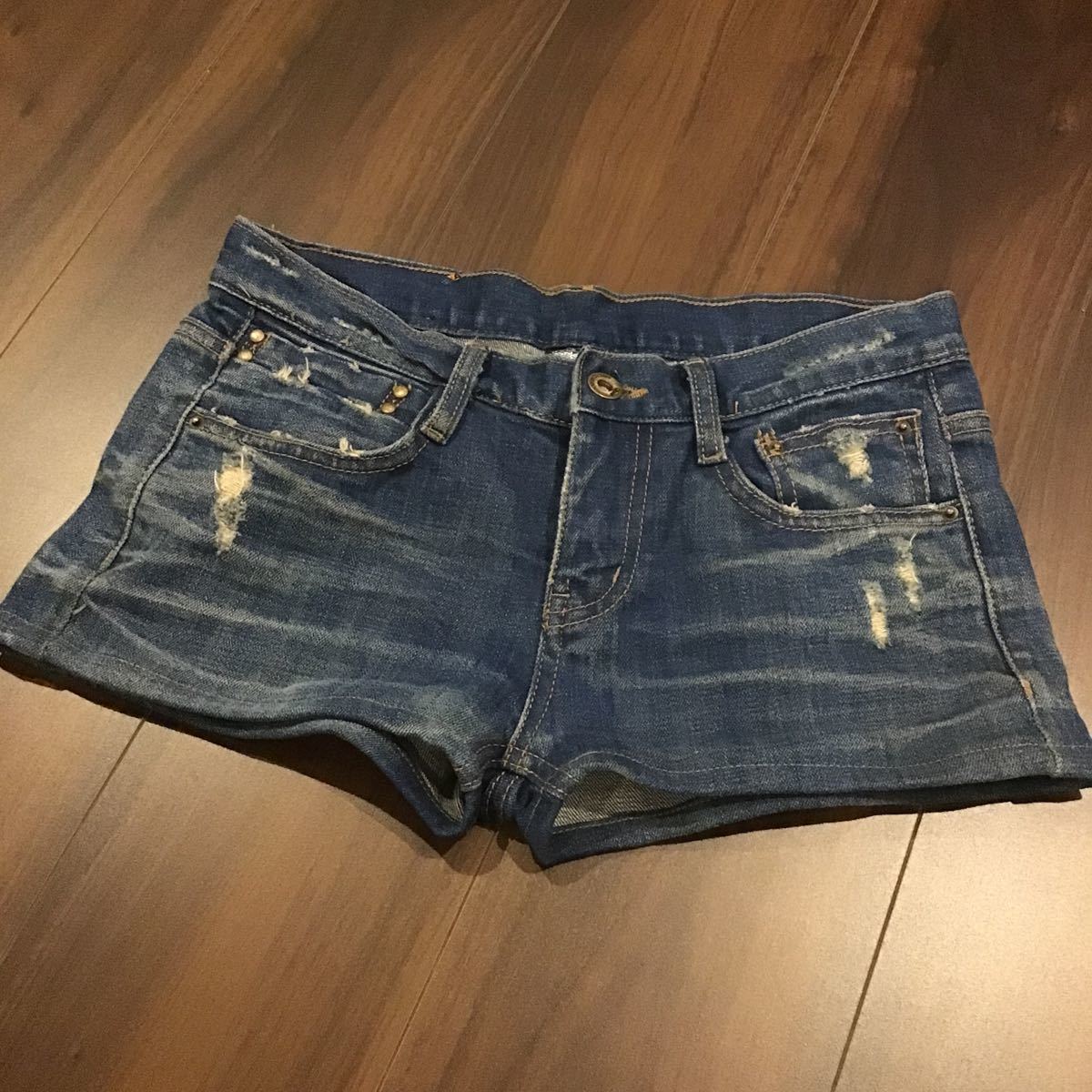 未使用品のジーンズをショートパンツに加工された物だと思います。