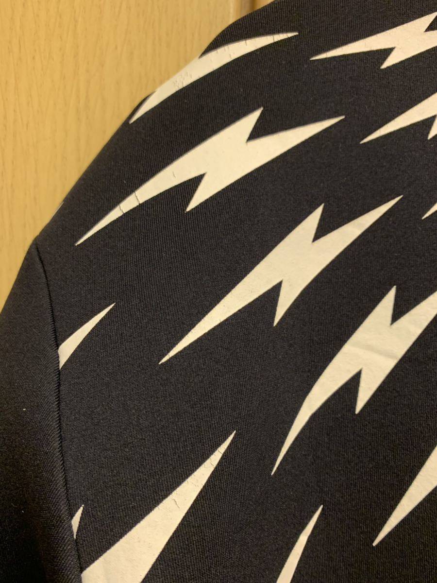 正規店購入後に数回着用。プリントヒビがある箇所ございます。素材の特性上保管による折り目がある場合ございます。その他、目立った傷や汚れございません。