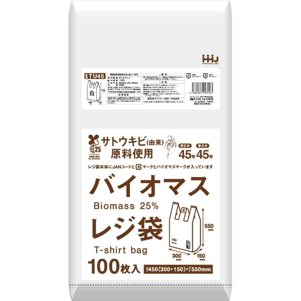 バイオマス配合25%レジ袋45号白100枚TU45 × 20点