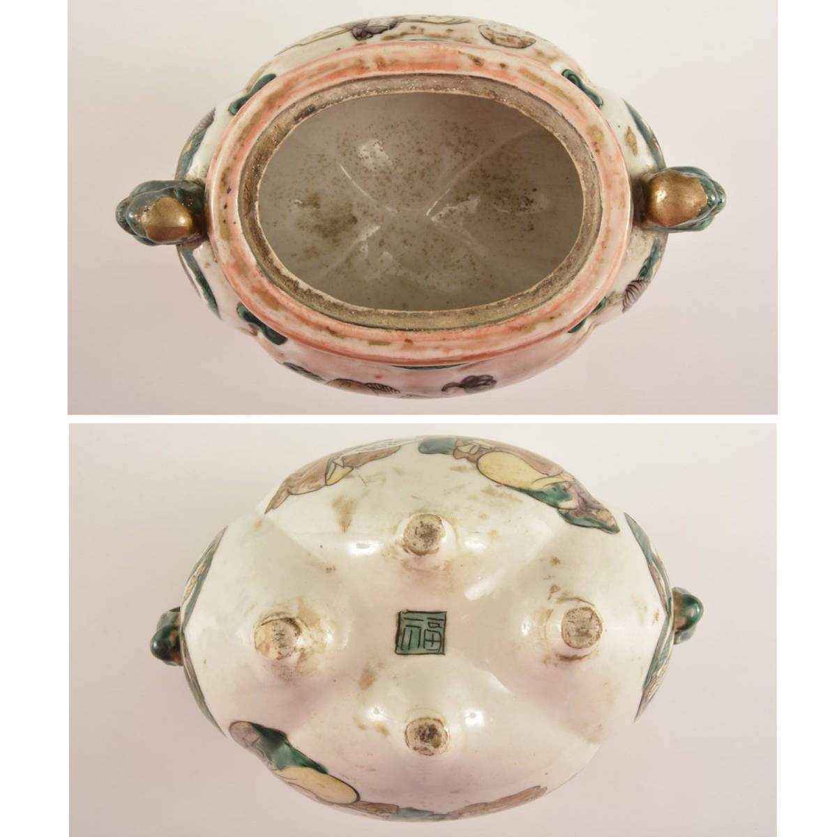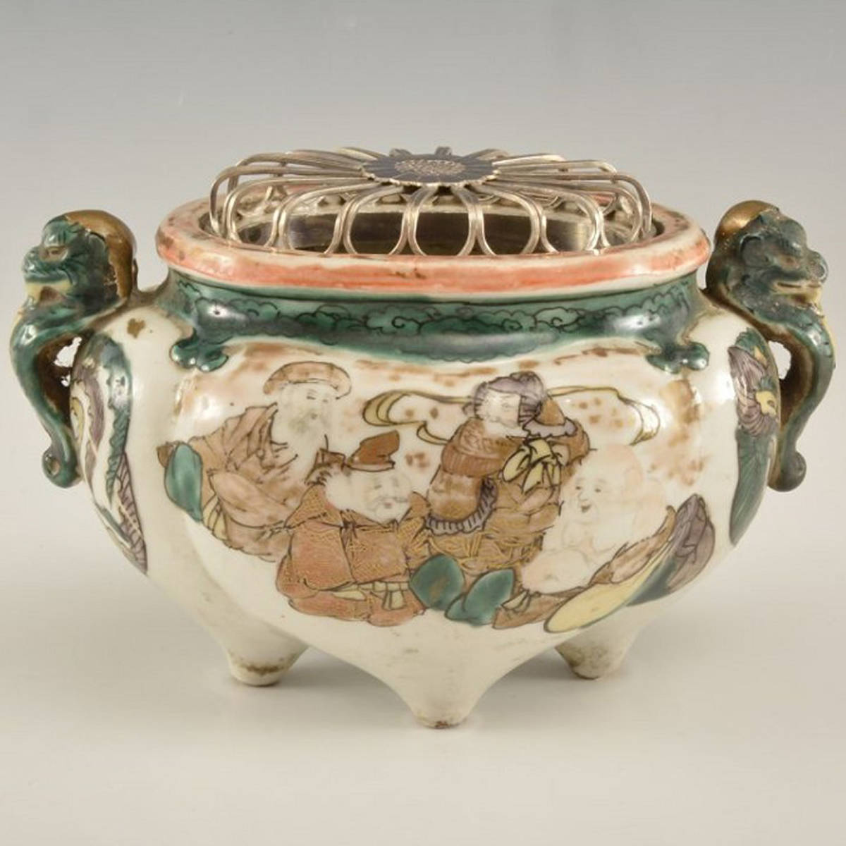 B12661 九谷焼 七福神文香炉 銀ほや約52g:真作