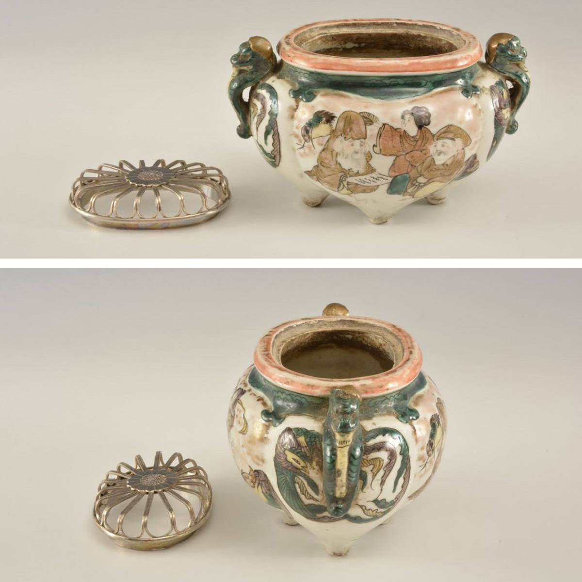 B12661 九谷焼 七福神文香炉 銀ほや約52g:真作。
