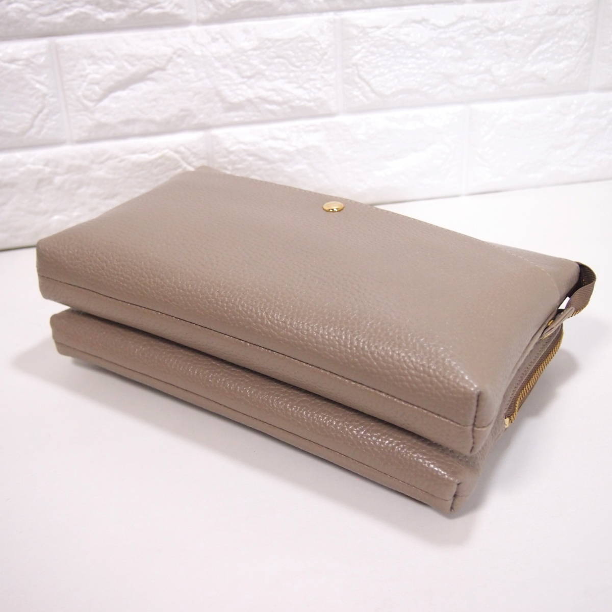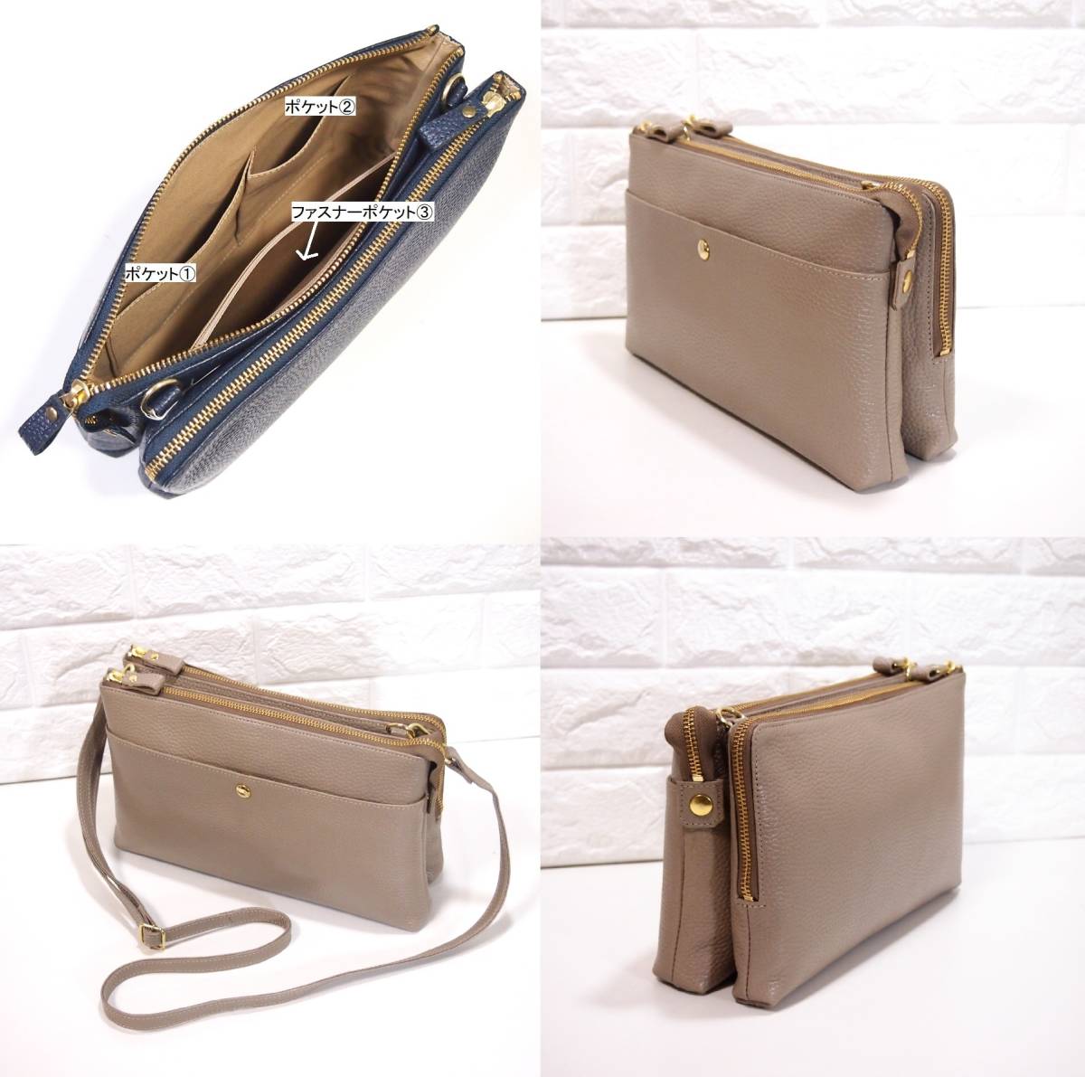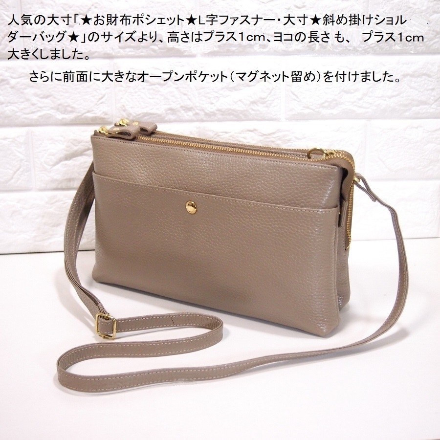 ★新品★ハンドメイド★日本製★本革★L字ファスナー・特大寸★2WAY★斜め掛けショルダーバッグ★トープ色★オープンポケット★