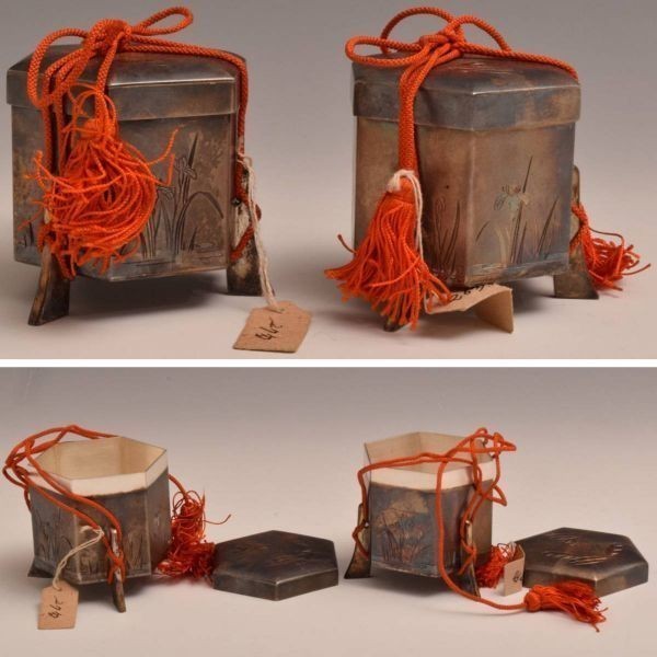 状態:小擦れ少々。各底に「純銀 宮本造」と銘あり。箱無し。