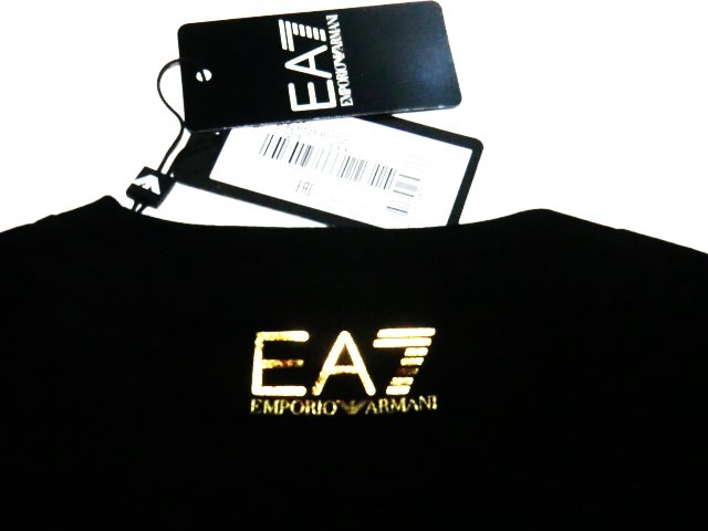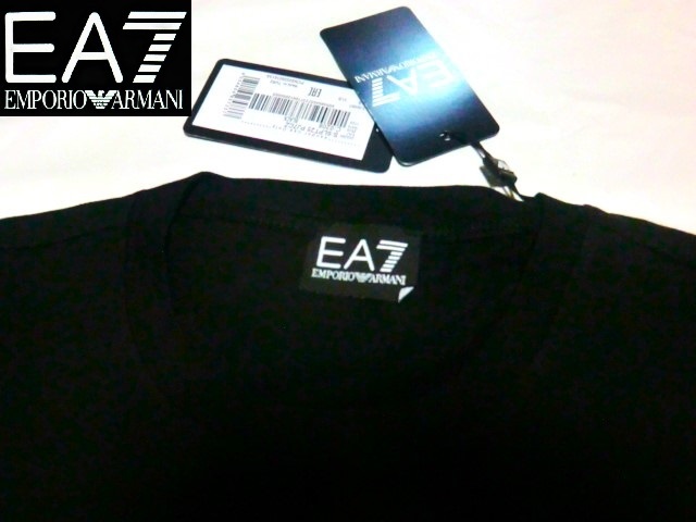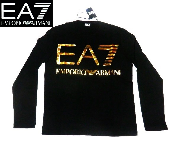 ★新品! EA7 EMPORIO ARMANI リッチでお洒落!!存在感抜群☆6LPT25 ちょいワル大人の今ドキ!!格上げ☆お目立ち♪でかEA7ロゴ黒ロンT<S>