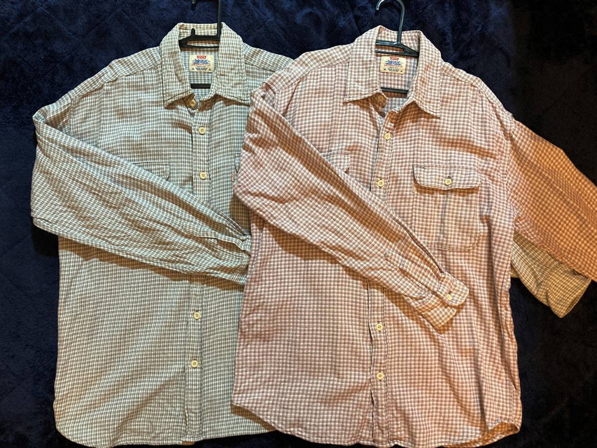 ファッション衣類 ☆ 廃番古着 長袖シャツ Levi's リーバイス グリーン・レッド系 チェック柄 L 色違い2着 作業着 アウトドア