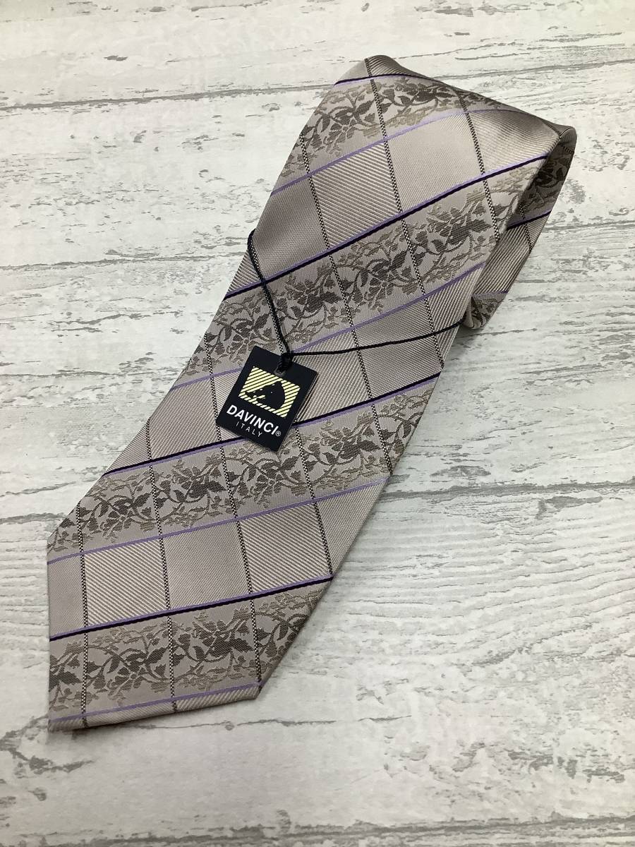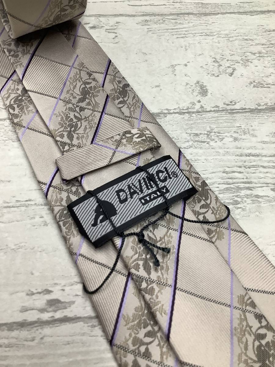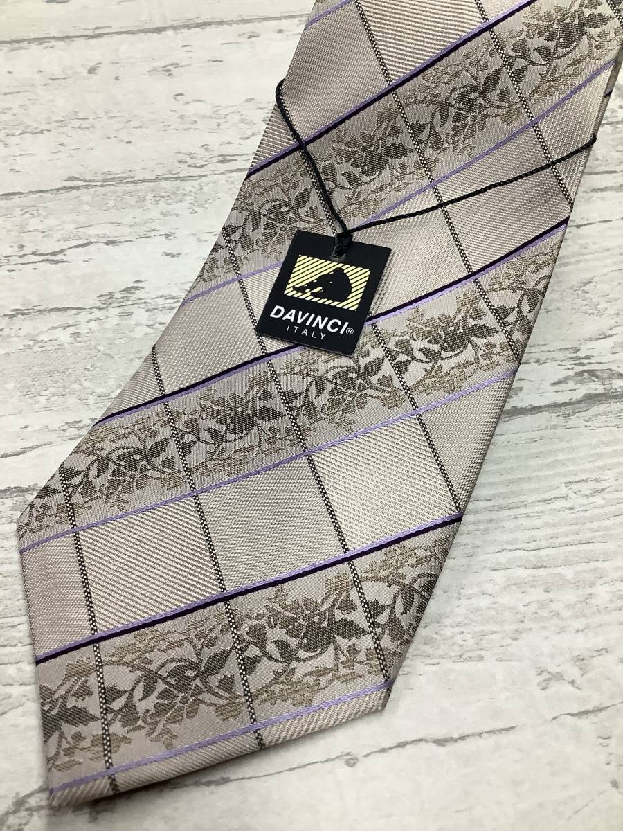 新品未使用 DAVINCI ダヴィンチ 明るいベージュチェック柄 綺麗なゴージャス花柄入り シルク100%ネクタイ お洒落柄 お買い得