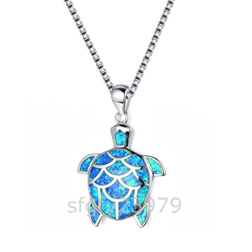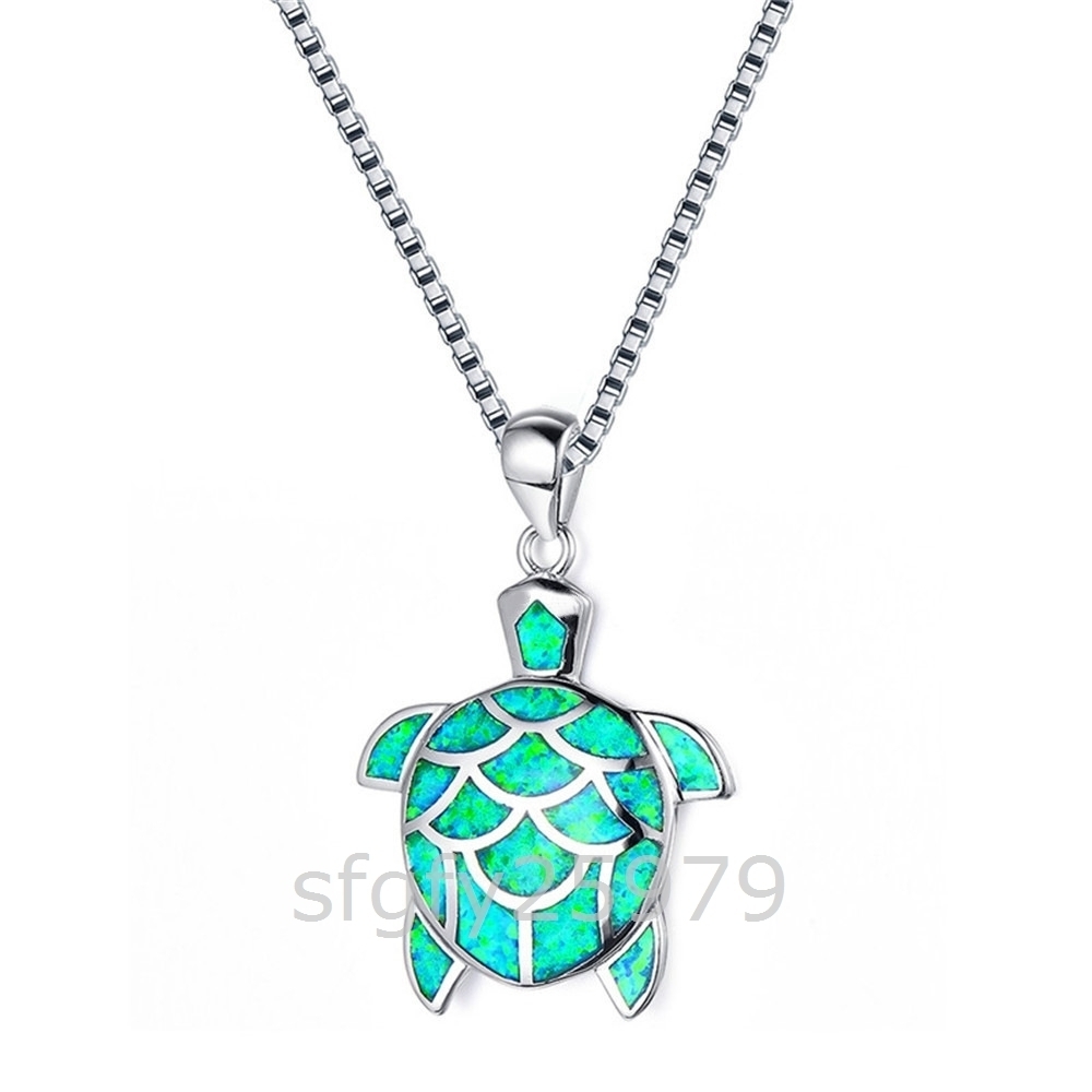 799☆新品☆1円 スターリングシルバーかわいいタートルペンダントオーシャンブルーファイヤーオパールネックレス