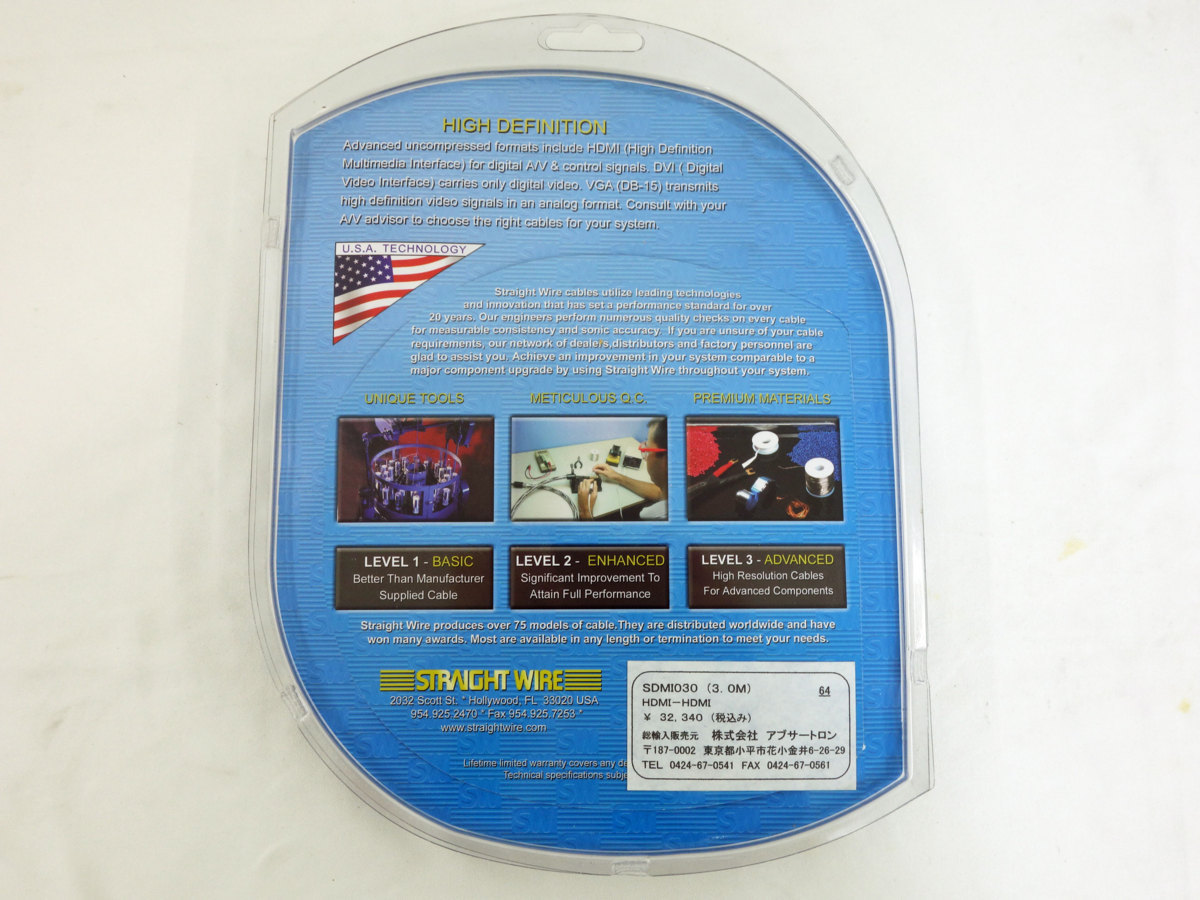 未使用/送料無料 ◆ SDMI030 ストレートワイヤー HDMI ケーブル 3m太さ約10mm ◆ 在庫6 オーディオ HDMI 1.3 24AWG