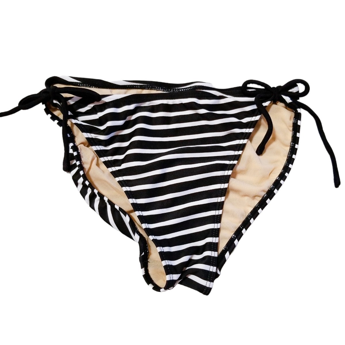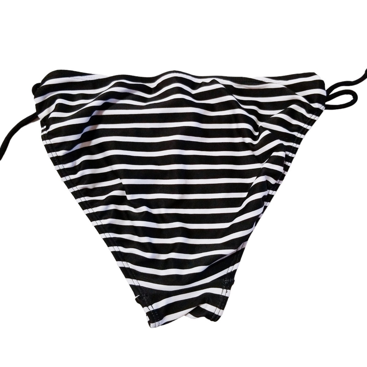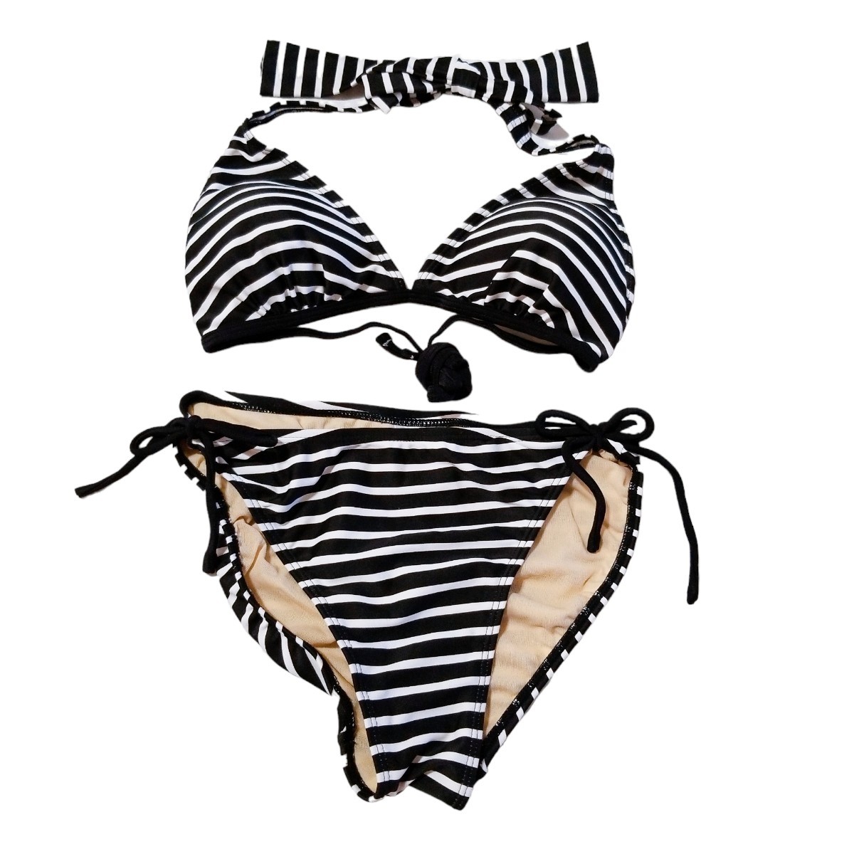 Y573 美品★COMME CA ISM コムサイズム 水着 ビキニ 上下セット ホルター ブラック ホワイト ボーダー 自宅クリーニング済 L ノンワイヤー